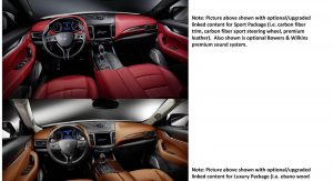 Still, it’s an interesting read with the PDF showing that Maserati will offer various packages, including the Luxury Zegna for around $8,000 on the base model and $7,000 on the ‘S’ variant, and the Sport Package that bundles features like 20-inch rims and red brake calipers for $6,000 and $5,000 respectively on the aforementioned editions.