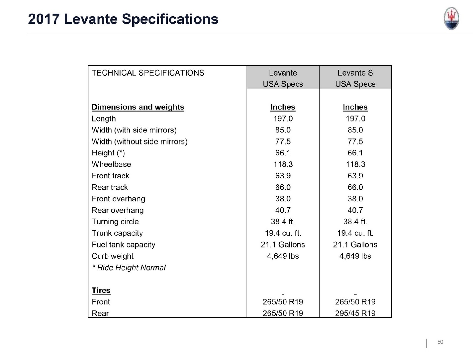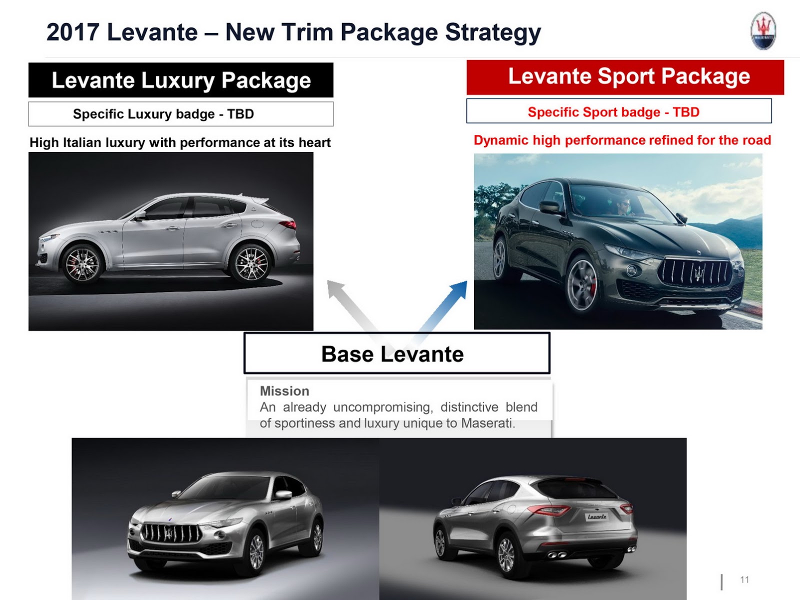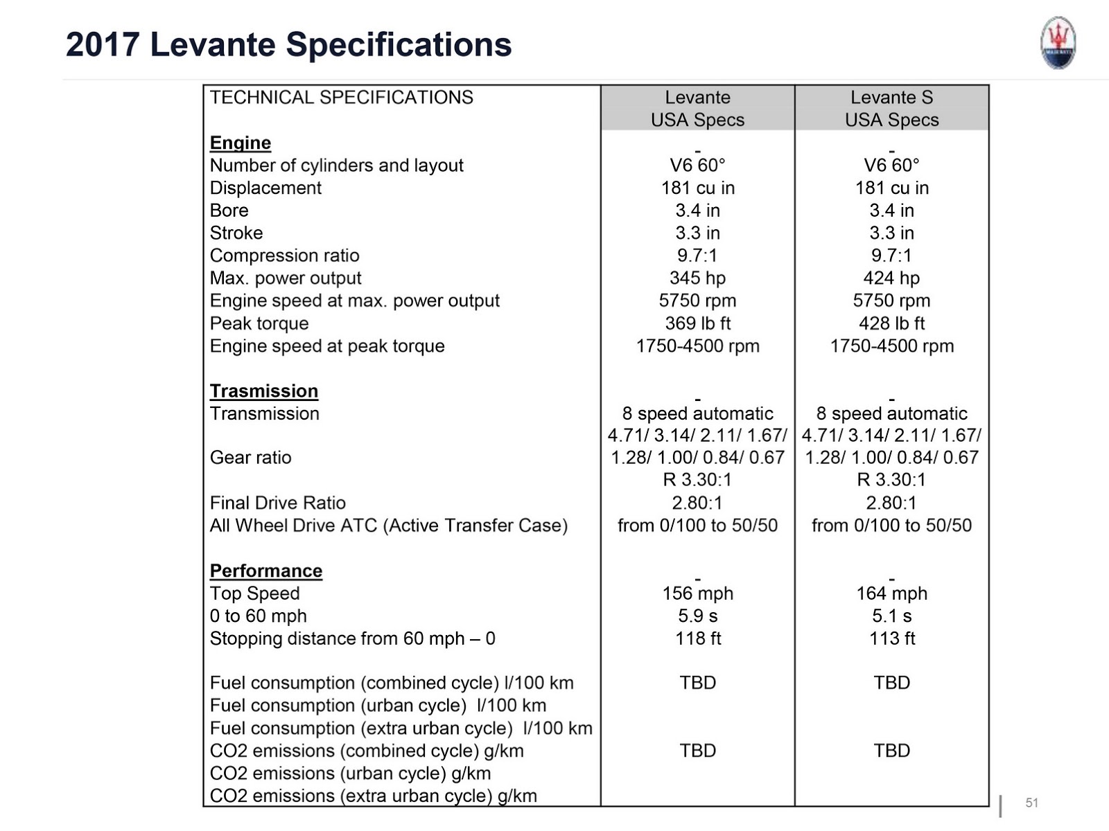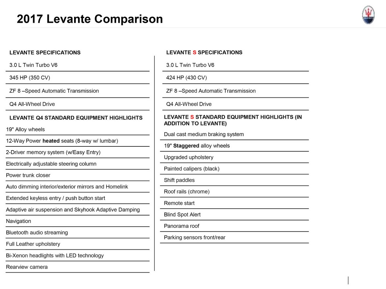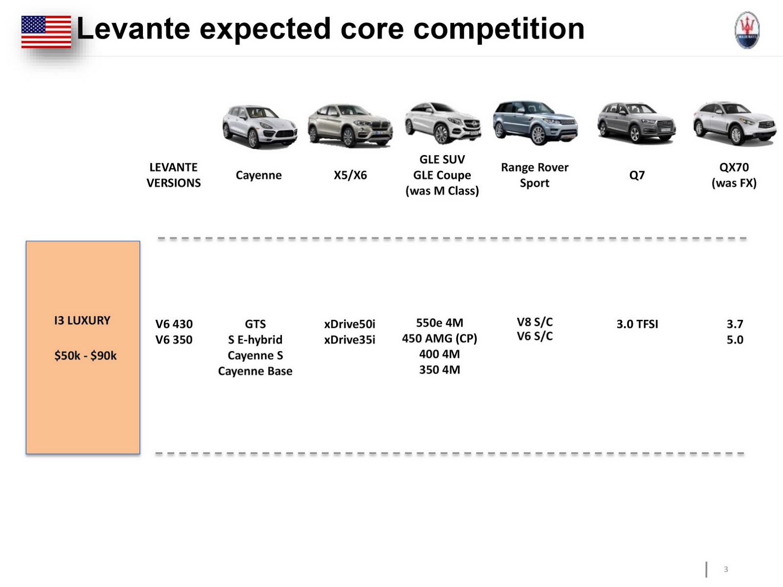 The dealer guide also mentions that Maserati expects the Levante’s core competition to include luxury SUVs priced between $50,000 to $90,000 in the USA, including the Porsche Cayenne, BMW X5 and X6, Mercedes-Benz GLE and GLE Coupe, Land Rover’s Range Rover Sport, Audi Q7 and Infiniti’s QX70.