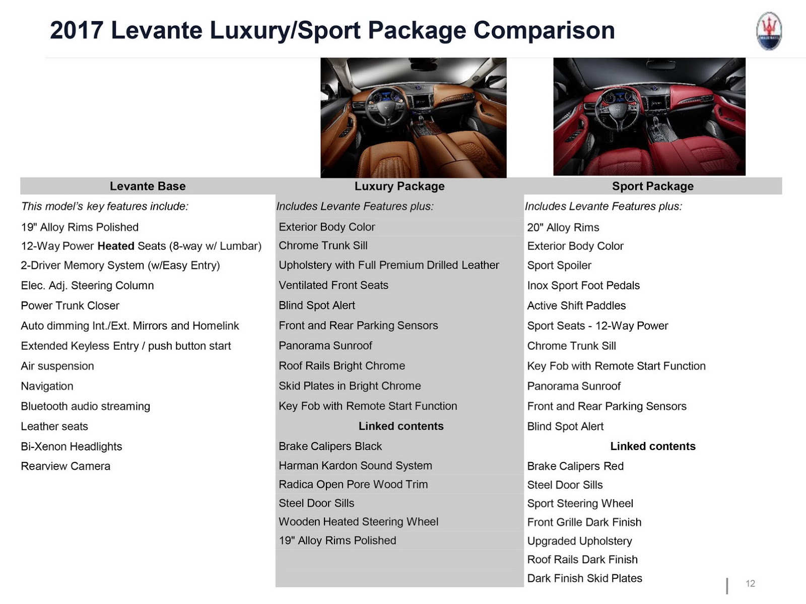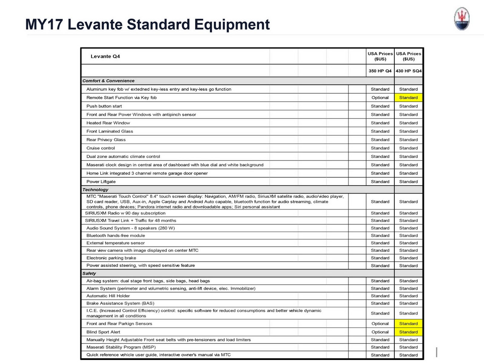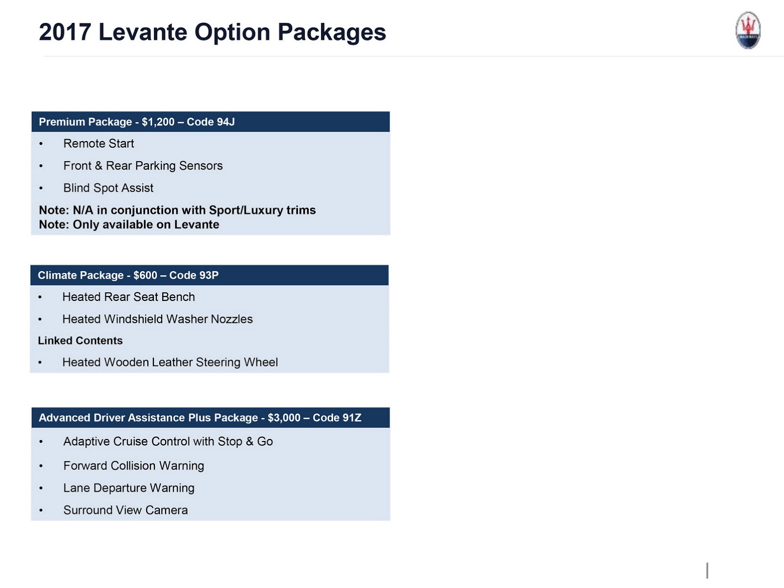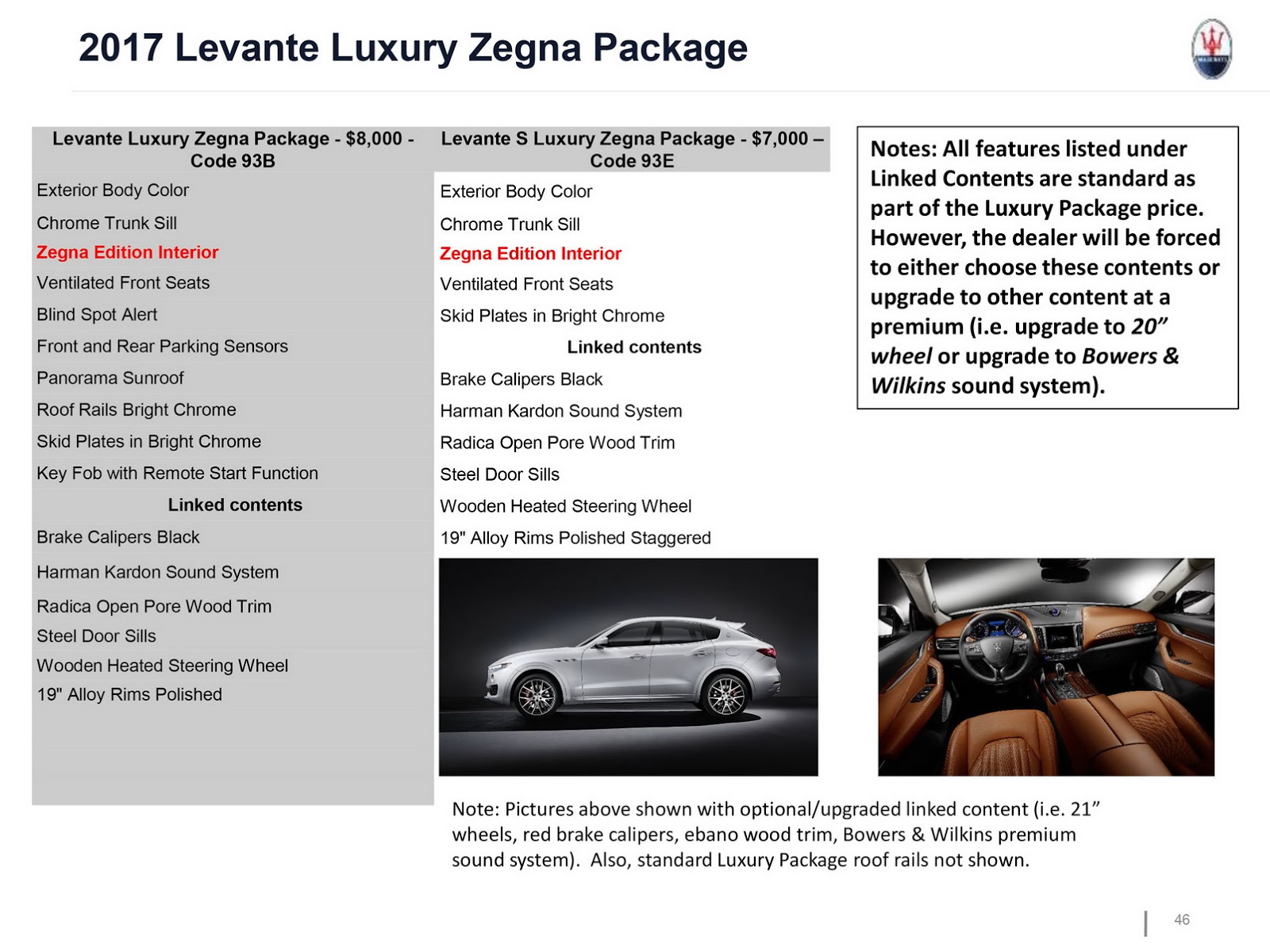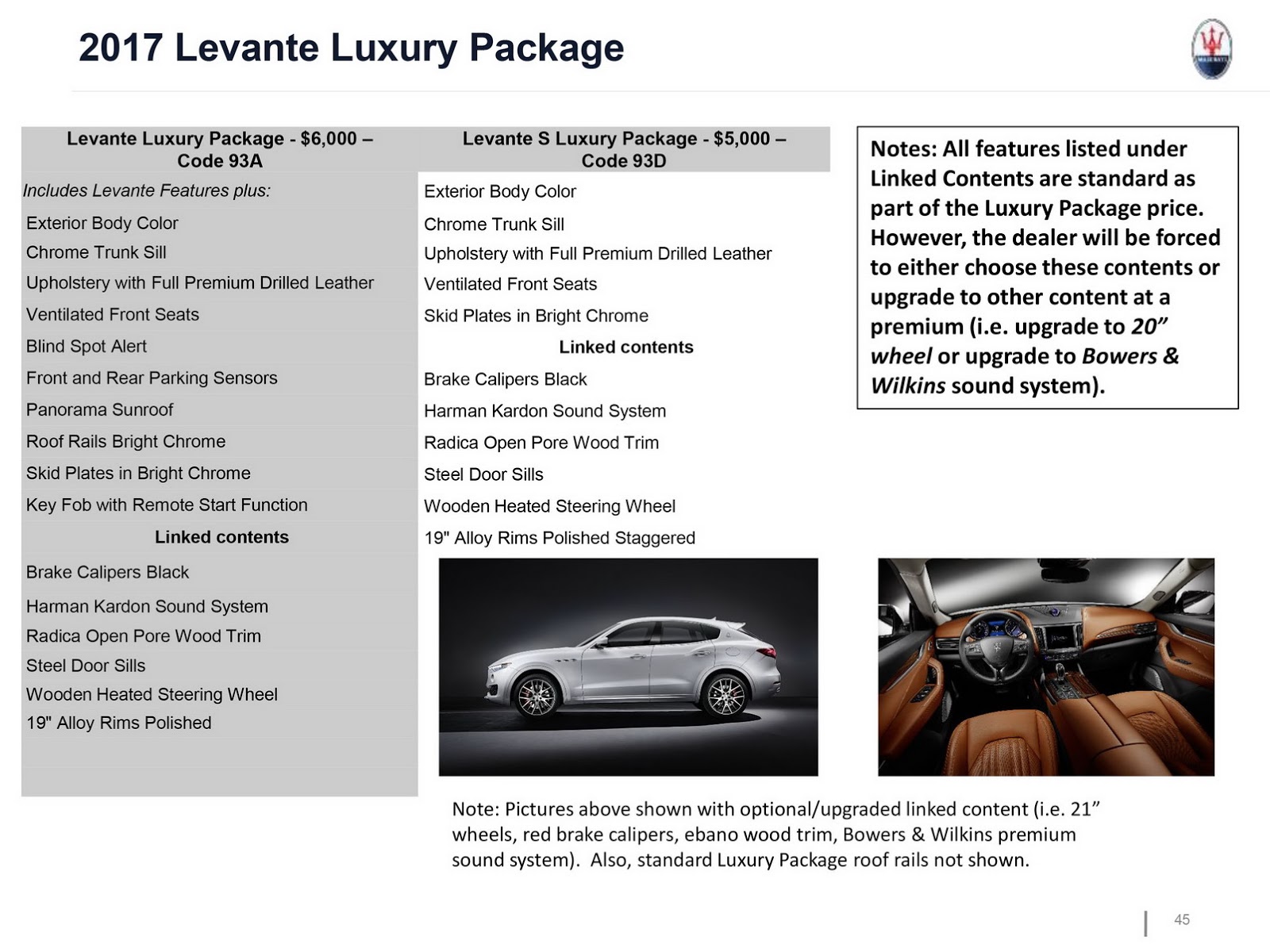 What Maseratilevanteforum member Maserati_Matt offers us today is the preliminary dealer ordering guide that gives us an insight on what the Italian brand plans to charge for various extras, packages and such – though, keep in mind that these are believed to be estimates, not final prices.