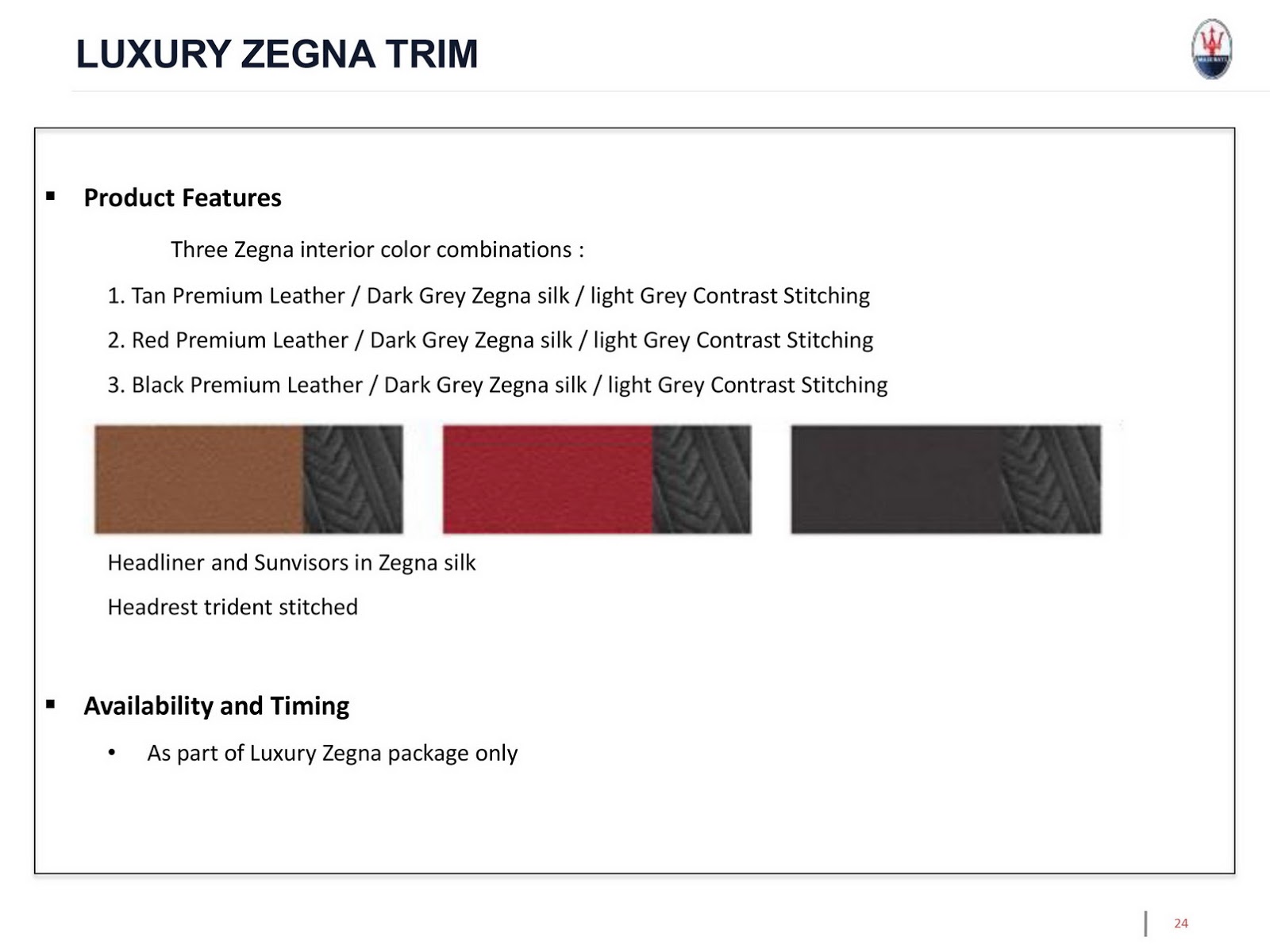 Still, it’s an interesting read with the PDF showing that Maserati will offer various packages, including the Luxury Zegna for around $8,000 on the base model and $7,000 on the ‘S’ variant, and the Sport Package that bundles features like 20-inch rims and red brake calipers for $6,000 and $5,000 respectively on the aforementioned editions.