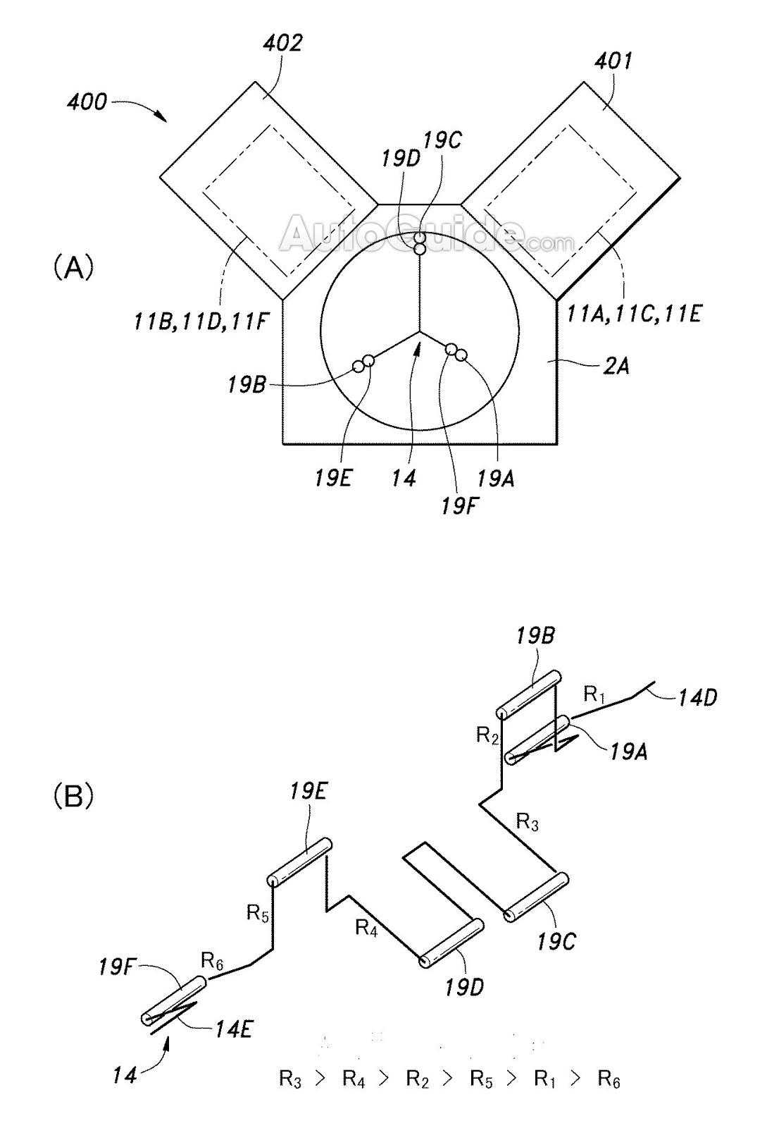 Autoguide discovered that Honda patented this idea on Japan’s office database, presumably aiming to increase fuel efficiency through cylinder deactivation. Basically, on a four-pot engine (combined with the aforementioned deactivation technology), the system would allow more than four different engine capacities, with 15 combinations of one-to-four cylinders firing, and 15 different displacements working at a time – based on the crank throw radius.