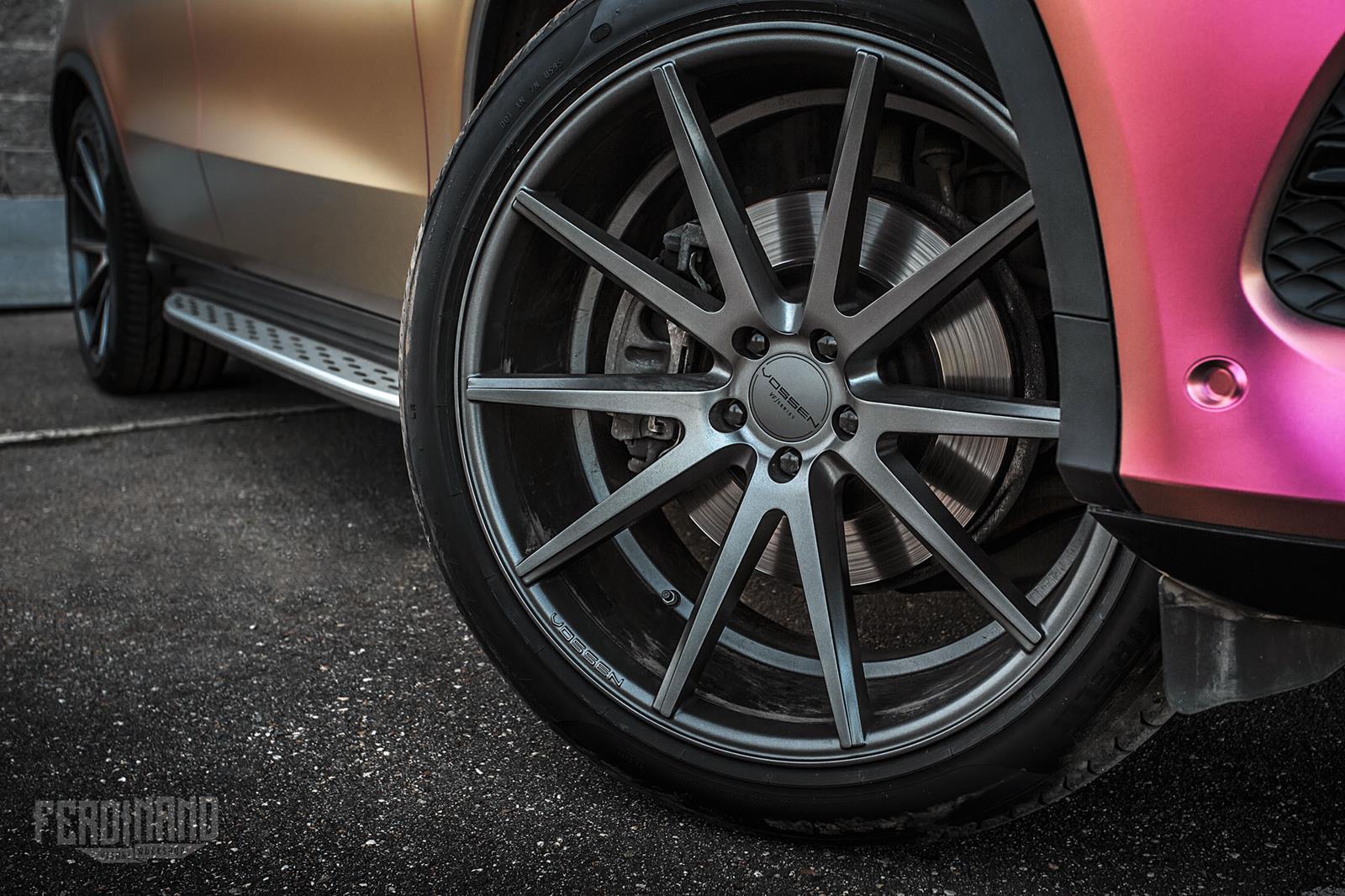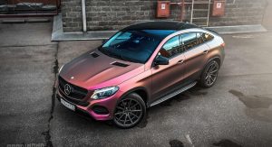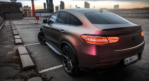 This Mercedes-Benz GLE Coupe owner played it safe and went with a multitude of colors when he got his car wrapped. And yes, the wrap changes colors between various shades of pink, orange and brown to compliment the tinted windows and black exterior inserts.