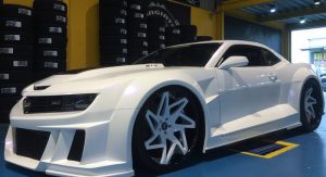 There’s not much info going around about the wide-body Camaro ZL1 at Forgiato’s website where we found it other than it’s wearing the company’s ‘Finestro-ECL’ rims that are available in sizes from 20- to 24-inches – our guess is that they’re from the upper end of that scale, though, the wording on the adjacent signs suggest that the car was photographed somewhere in Asia.