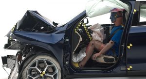 In comparison, the previous version of the German vehicle tested by the IIHS’ engineers had 16 inches (40 cm) of intrusion at the footwell, trapping the dummy’s right foot and crashing its way into a ‘Marginal’ rating in the small overlap test.