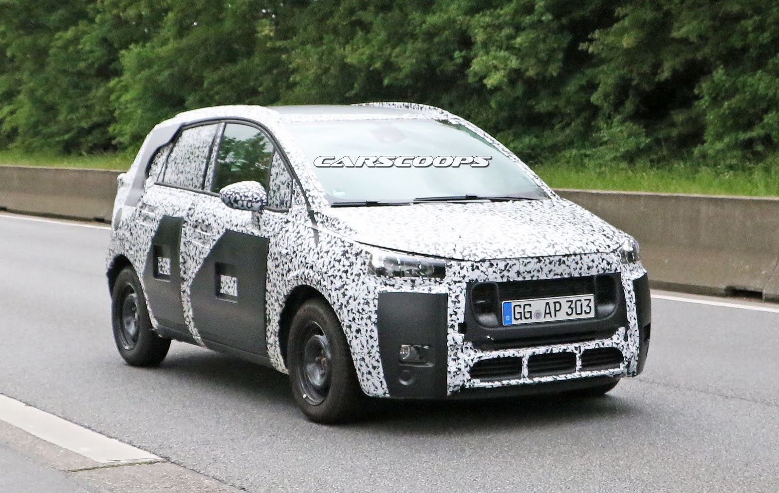 These latest spy shots from Germany may or may not provide an answer, but it’s worth noting that, like the Opel Meriva and Citroen C3 Picasso prototypes we’ve spotted over the past few months, this tester only differs up front from the other cars, leading our spies to believe it could be a Peugeot mule.