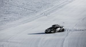 After converting the AWD raging bull to a rear-wheel-drive layout and sticking some spikes in the extremely wide tires, Olsson took in the (presumably) modified 6.5-litre V12 Murcie on Norway’s west coast to hoon it. But he quickly found out a supercar doesn’t cope that well in the snow – a lesson taught to us by Red Bull’s Ferrari F40 stunt – even if it’s been equipped with heavy duty tire spikes.