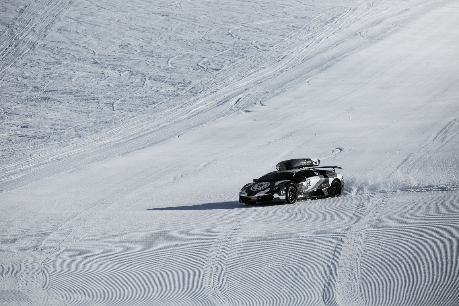 Okay, the Lambo’s weight didn’t help much either, but in the end at least Olsson got to the…middle of the ski track. Far from his initial plan, but at least the adventure made for some nice pictures.