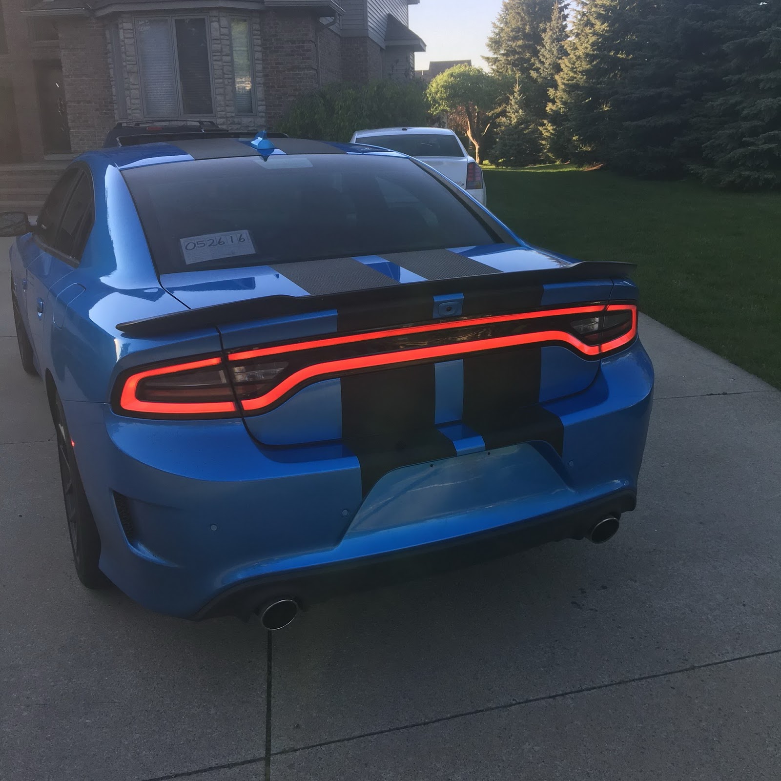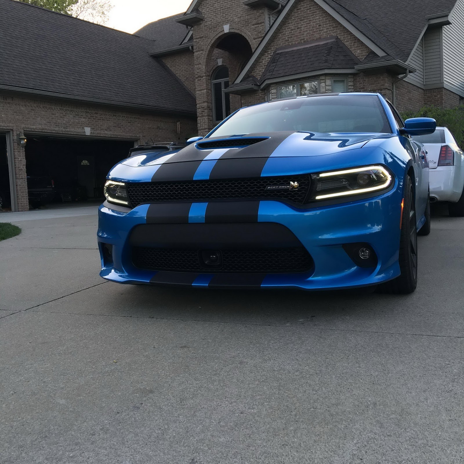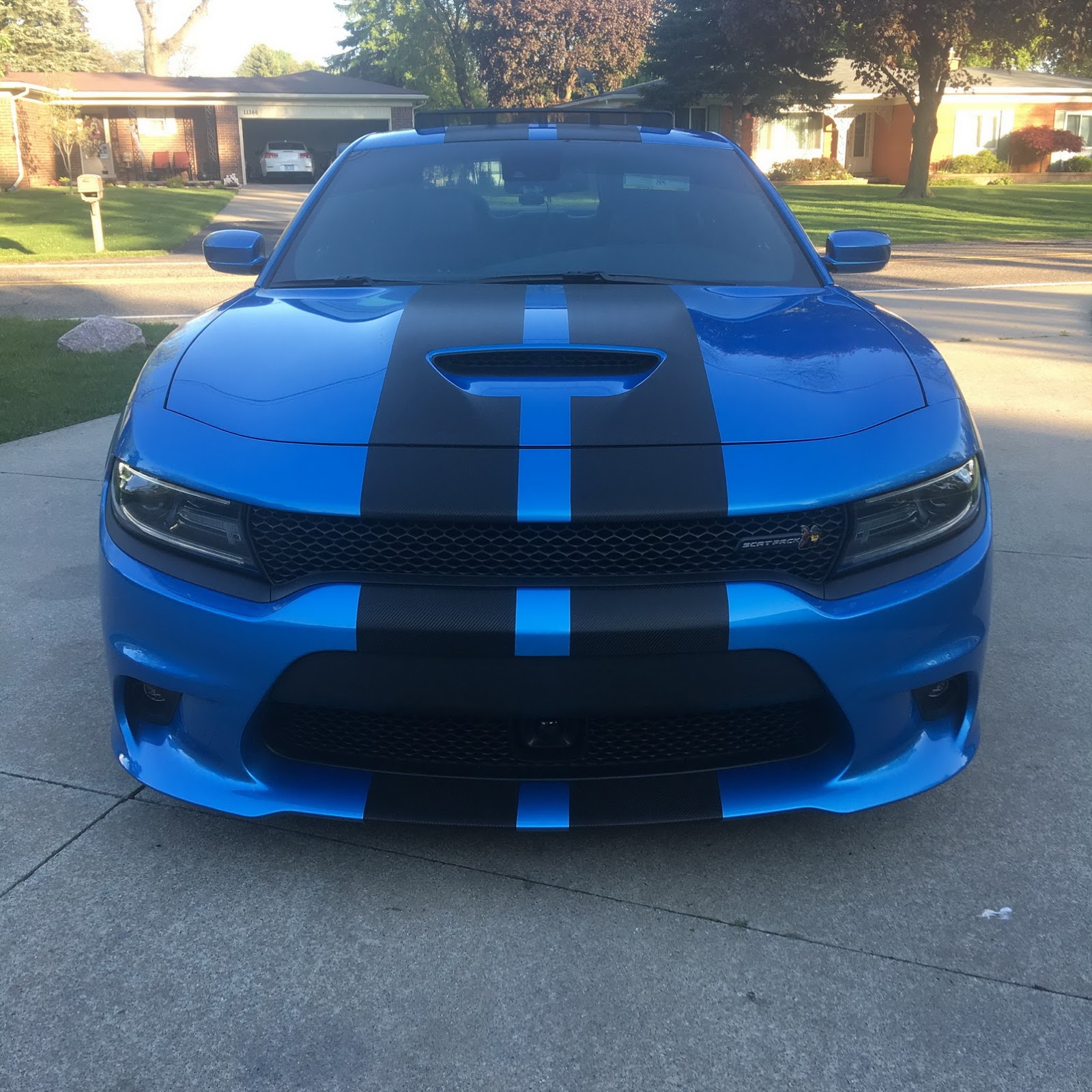 What do you think about the end-result? Black and blue don’t always work well together, but Dodge’s Blue Pearl exterior color doesn’t seem to interfere much with the darker stripes.