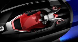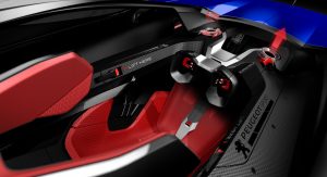 Peugeot’s engineers and designers worked closely together to develop the car that is “one with its driver”, as the manufacturer writes, making use of the brand’s i-Cockpit technology that takes a motorsport stance with a small steering wheel and two holograms showing info in dual disc displays. The original two-seat architecture of the L45 was reinterpreted by the French, who came up with a single-seater design.