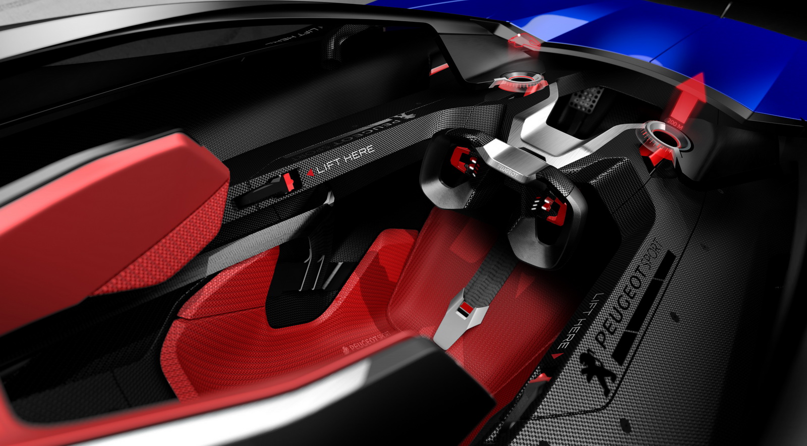 Peugeot’s engineers and designers worked closely together to develop the car that is “one with its driver”, as the manufacturer writes, making use of the brand’s i-Cockpit technology that takes a motorsport stance with a small steering wheel and two holograms showing info in dual disc displays. The original two-seat architecture of the L45 was reinterpreted by the French, who came up with a single-seater design.