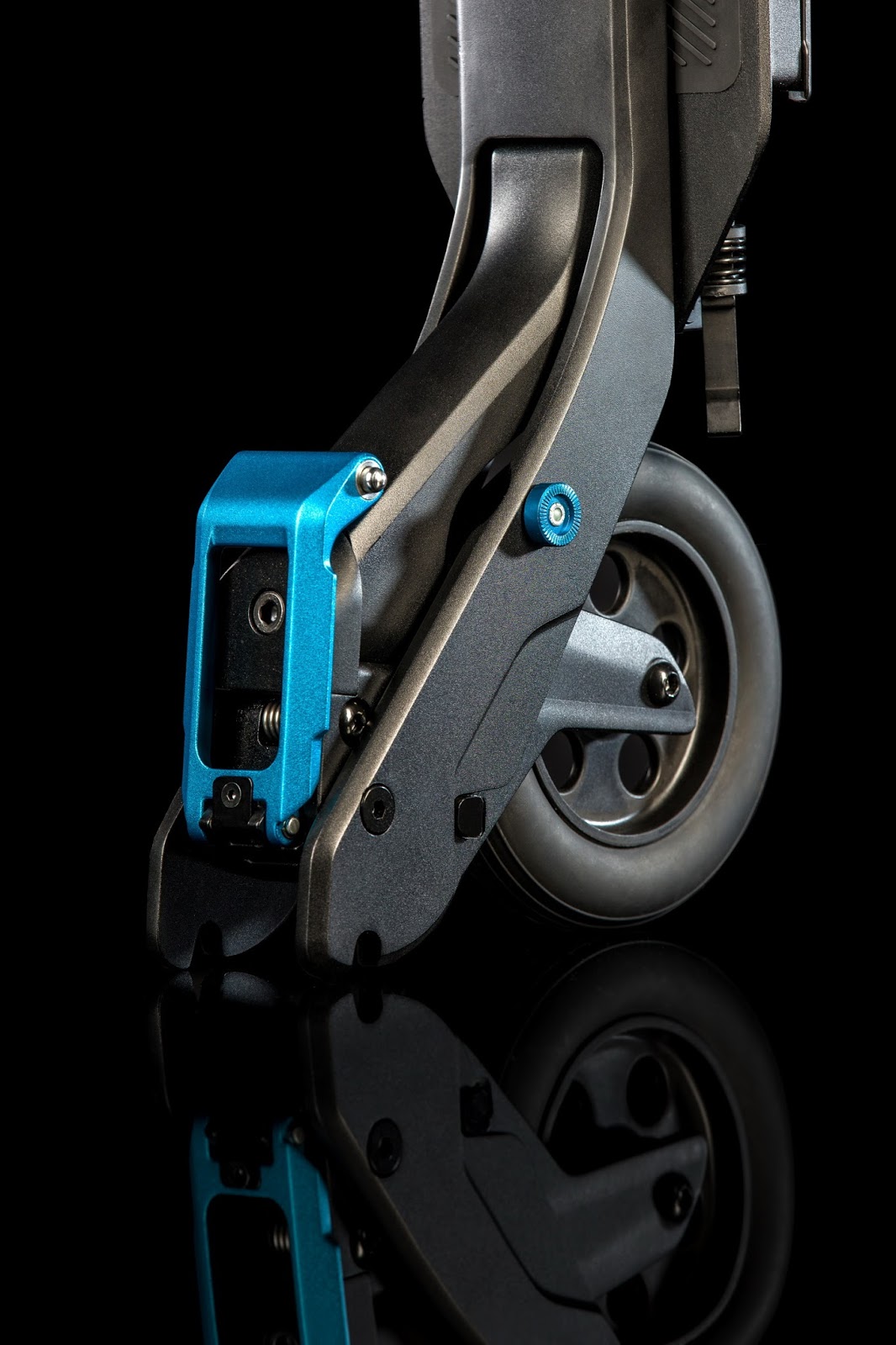 The chassis of the new e-Kick is easily foldable in seconds, which allows it to be rolled along on its front wheel instead of carrying it. “The e-Kick is a truly multi-modal designed not just to be a mobility solution in itself but also to link all the other solutions together,” said Cathal Loughnane, Peugeot Design Lab Manager. “The two handles used in driving mode fold up into a single handle that allows the scooter to roll from on one wheel, making it effortless to hop from your home to your car to a train to your work”.
