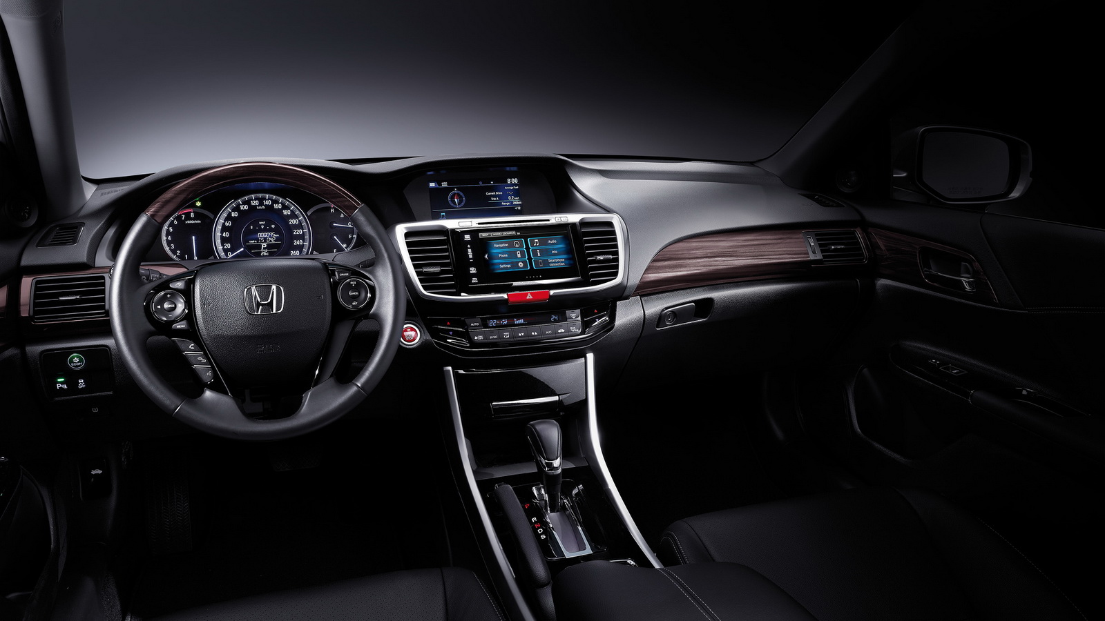 Some of the features of the refreshed Accord are the new 7-inch touchscreen display audio with navi, offered at no extra cost, dual-zone automatic air-con, sunroof, pull-up rear window shades, rear center armrest with audio controls, remote engine start function and cruise control, coming as standard or optional, depending on the selected version.