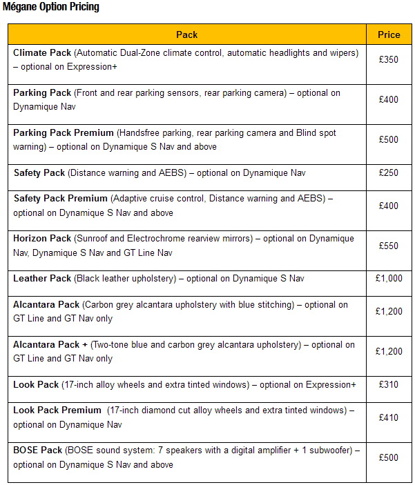 Each trim level gets its own optional personalization package, where for example Expression+ owners can fit their car with the Climate Pack, which brings automatic dual-zone climate control, headlights and wipers, while the Parking Pack on Dynamique Nav models adds front & rear parking sensors and rear parking camera.
