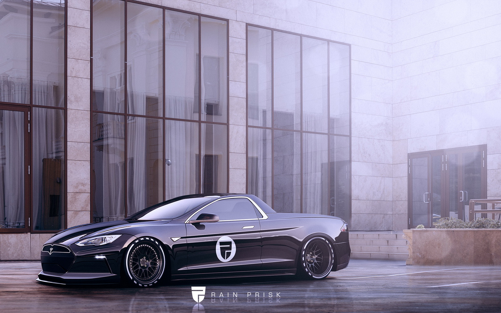 What you see here, though, is a flight of fantasy from RainPrisk who did a fine job converting a Tesla Model S into what Aussies call a ute by chopping off the regular model’s roof behind the B-pillars, and giving it a sportier stance and some eye-catching styling details in the process.