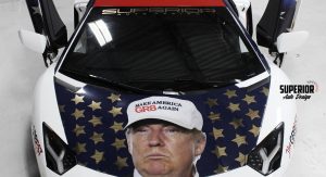 In fact, the 690 HP V12-powered supercar is privately owned and since the person driving it is a huge Donald Trump fan, he had it specially wrapped, with work done by SuperiorAutomotiveDesign, from Florida, which added the billionaire’s face on the hood and his slogan “Make America Great Again”.