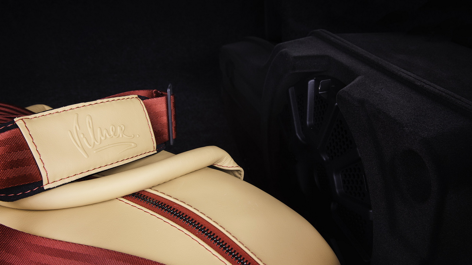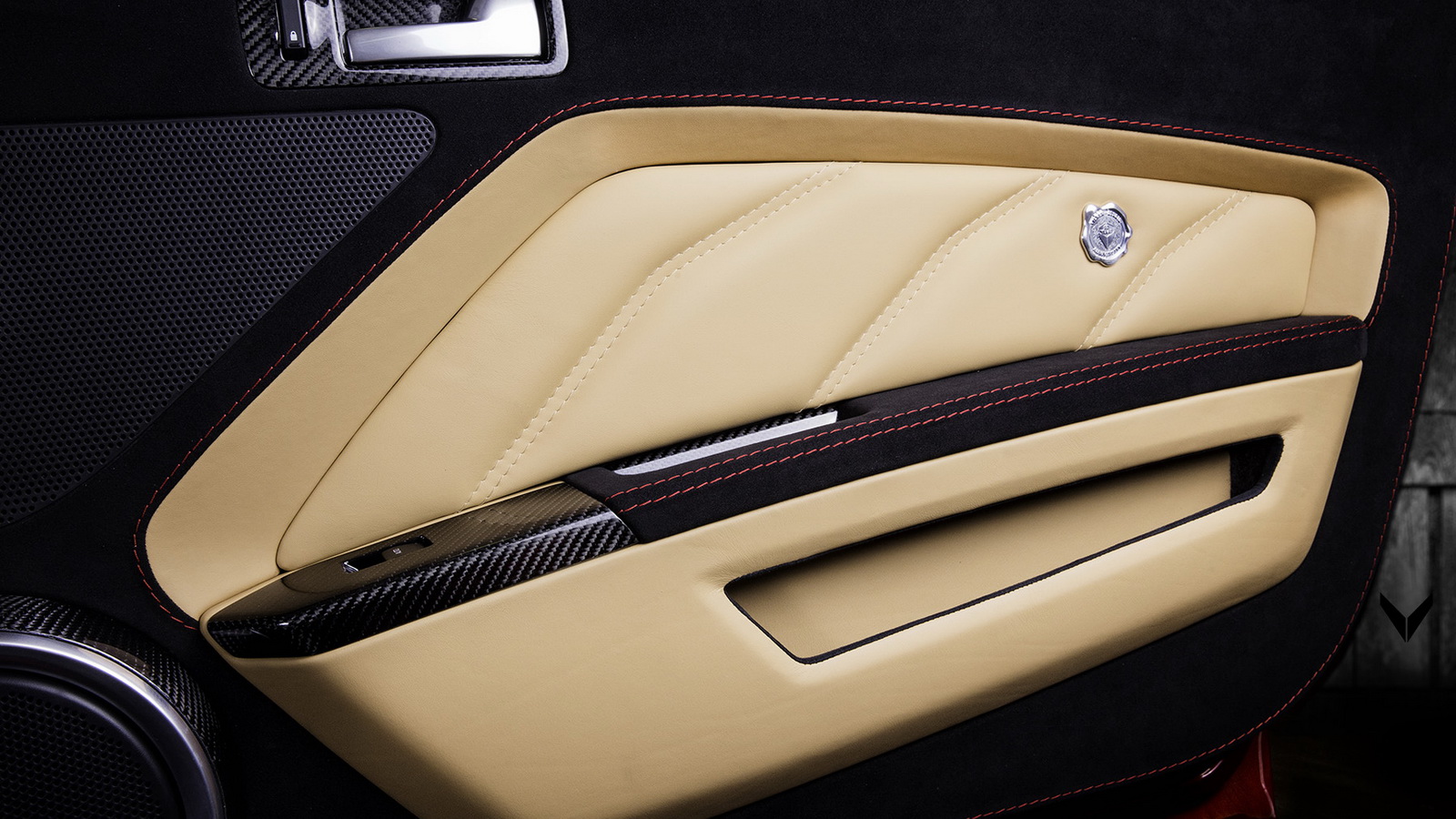 Glossy lacquered carbon is also part of the package, while all the hard plastics received a suede-like texture and additional sound-deadening material was added in some of the cabin’s key areas. Vilner also created two matching leather