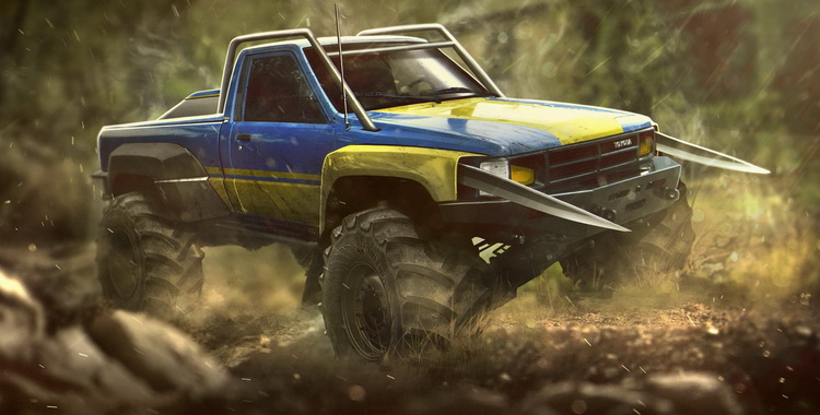 The Hilux is well-known for being “indestructible” – though if that were true, Cpt America’s shield would have been ‘Made in Japan’ and not out of Vibranium. Either way, Logan is well equipped to handle any terrain in this thing, especially with those large custom wheels and retractable blades.