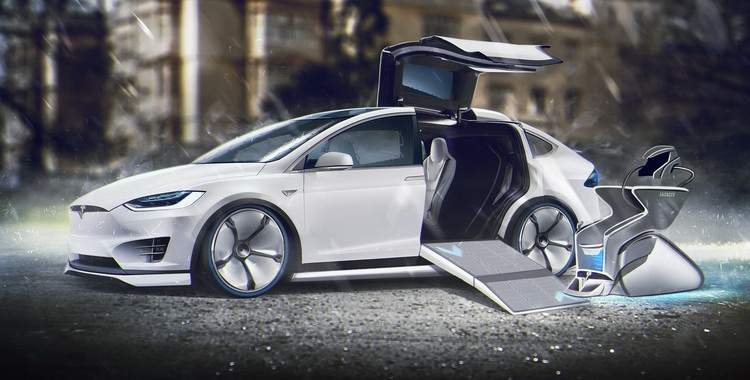 Ah, we see what they did there. The X from Xavier matches up nicely with the Model X from Tesla. The artist even gave it a hover ramp so that the Professor can use his futuristic hoverchair when accessing the car.