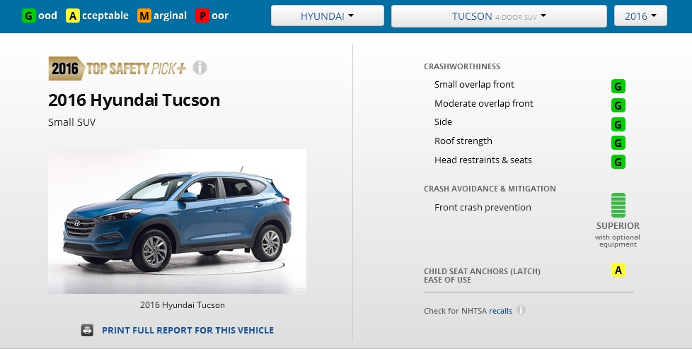 “Our 2016 Tucson’s good rating for both driver and passenger in the demanding IIHS small overlap crash test reflects our commitment to passenger safety at every level. We’re certainly proud of our Tucson’s industry-leading performance in the small SUV category“, said the Hyundai Motor America VP of Corporate and Product Planning, Mike O’Brien.