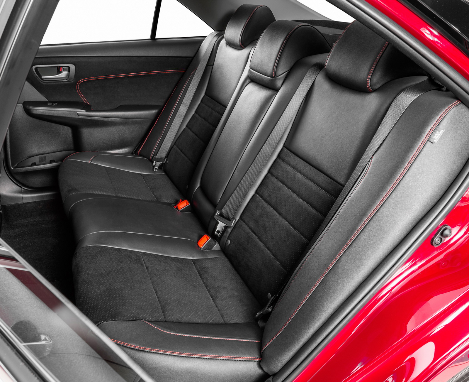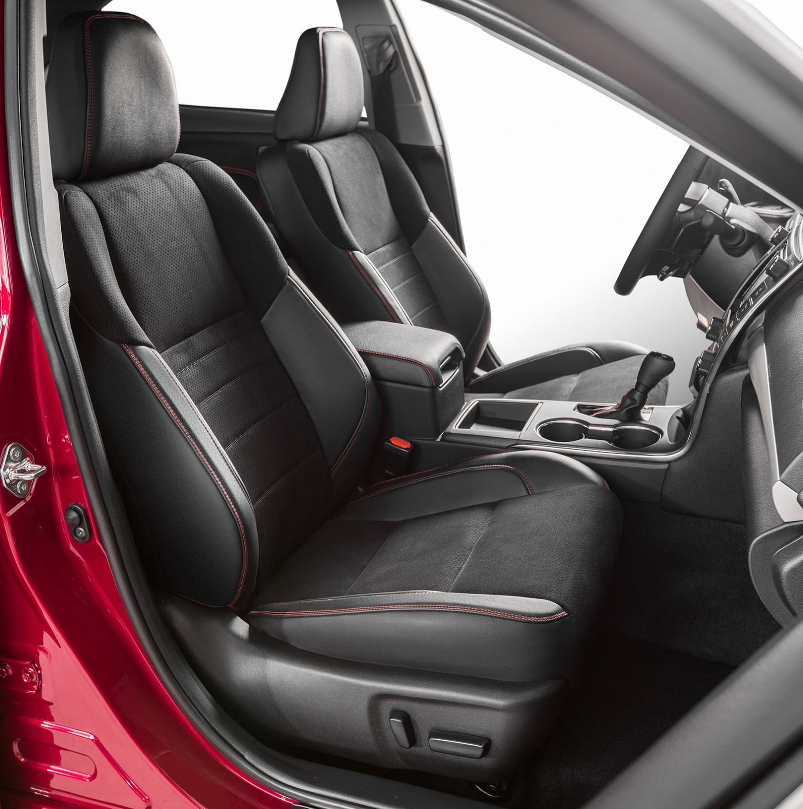 In the safety department, all Toyota Camry models are equipped, at no extra cost, with 10 airbags, STAR Safety System, which includes Traction Control, Vehicle Stability Control, Electronic Brake-force Distribution (EBD) and Brake Assist, Smart Stop Technology (SST) and tire pressure monitoring system.