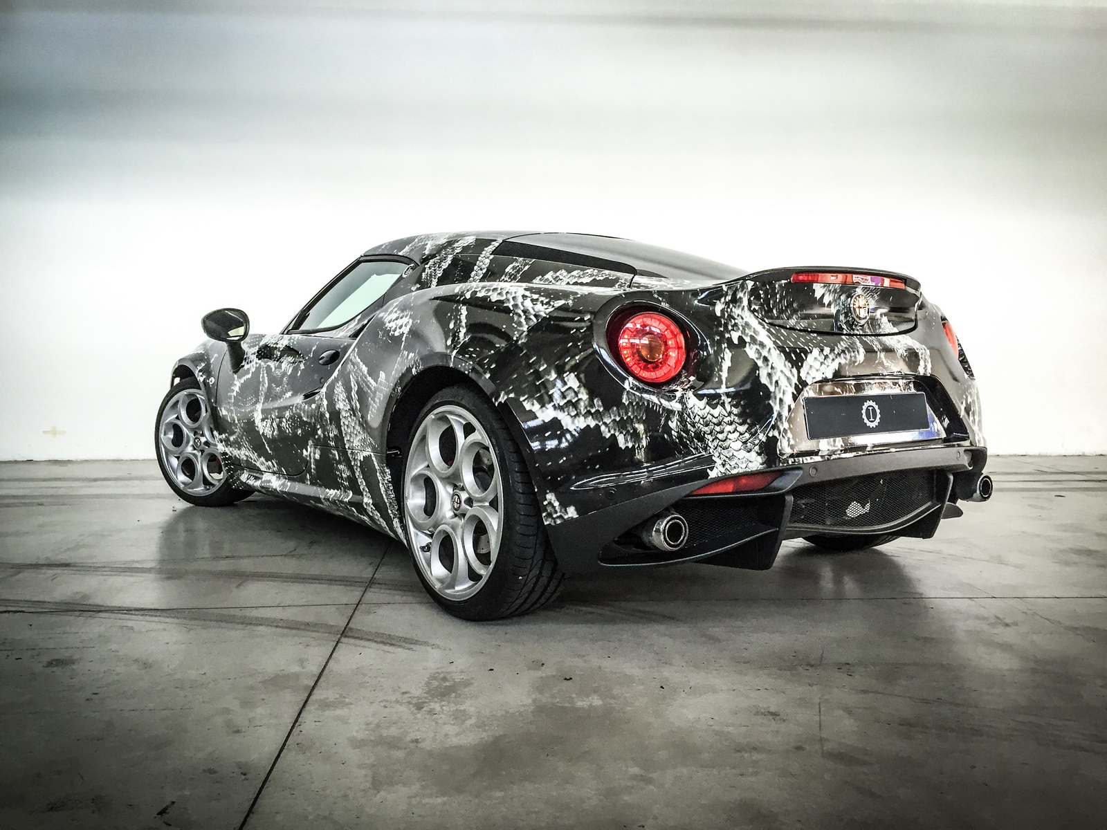 Garage Italia Customs gave the Alfa 4C a vinyl wrap that goes along perfectly with its track-slithering nature and the inspiration was… a shoe.