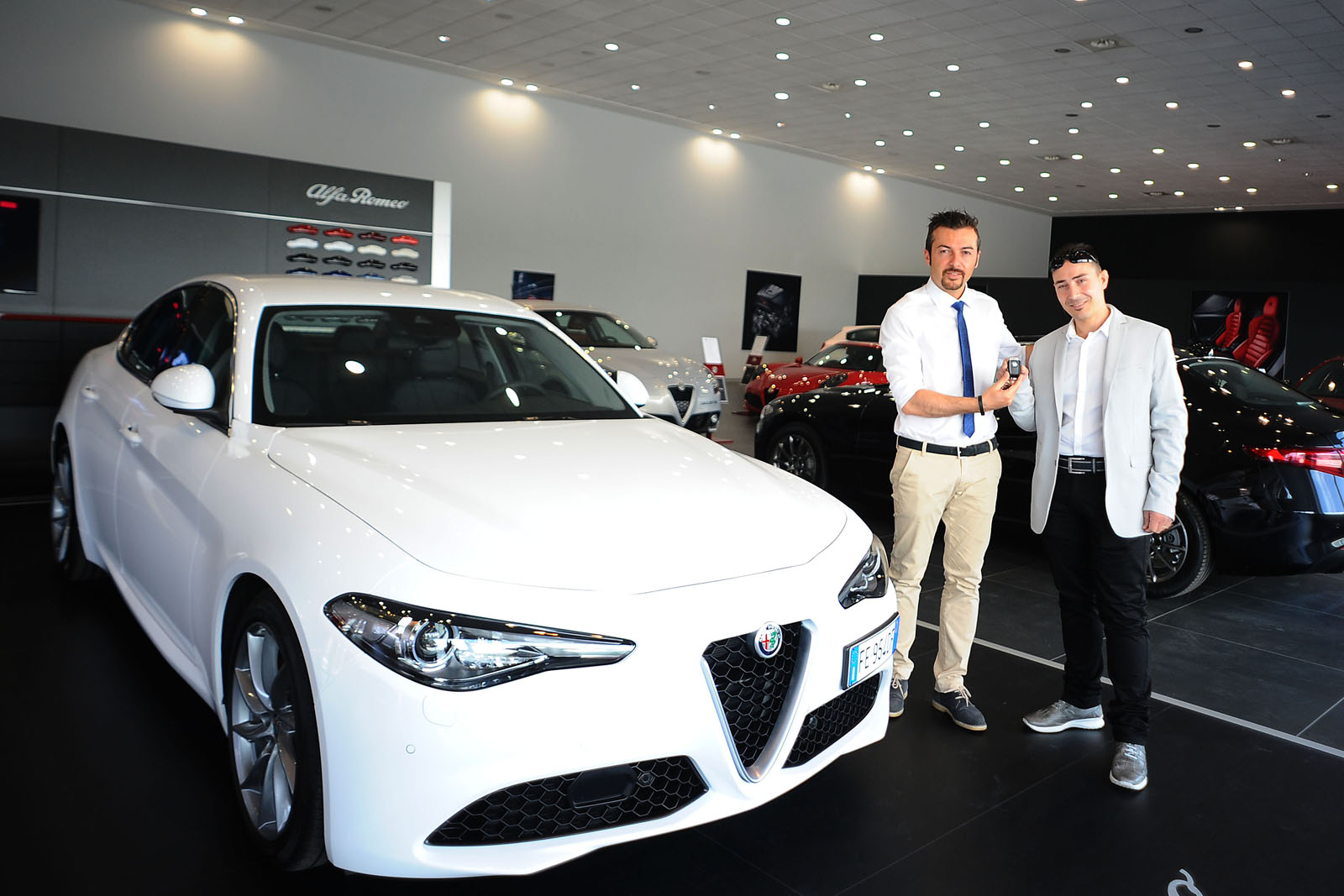 Finally, the Italian automaker started manufacturing its premium saloon and handed over the first six examples in its domestic market yesterday. Two were delivered with the 180-horsepower diesel engine in Milan and Arezzo, and four with the 150hp diesel in Mantua, Perugia, Bari and Ragusa. They were all in Super trim and came in a variety of colors including Montecarlo Blue, Vesuvio Grey, Vulcano Black and Alfa White.