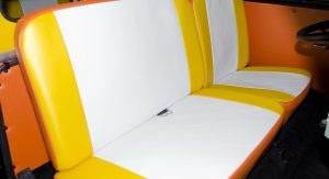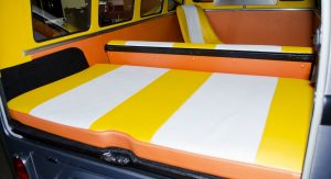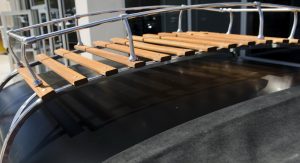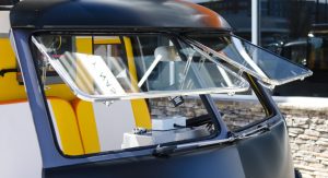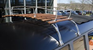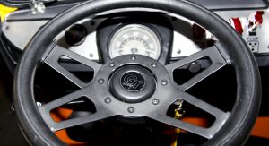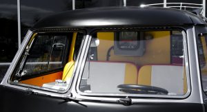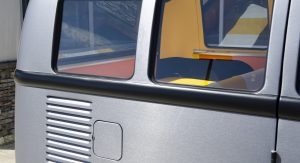 Upon completion, the car was presented with a stainless steel vinyl wrap, which mimics the DeLorean’s body, and gull-wing styled doors, although the Volkswagen still retains the stock sliding side door.
