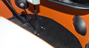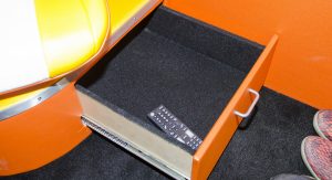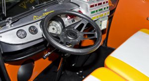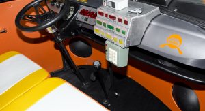 Inside, the car has been remodeled and refurbished, using a color scheme reminiscent of the Back to the Future logo. Moreover, the driver’s seat was transformed into a cockpit, equipped with a time machine module and flux capacitor.
