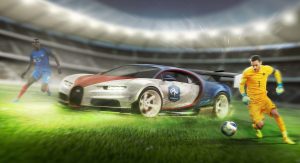 The car is rendered next to goalkeeper Hugo Lloris and star midfielder Paul Pogba.