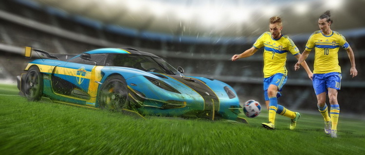 If France gets to showcase the Chiron, the Swedes can definitely pull out a hypercar of their own in the mighty Koenigsegg One:1 – able to accelerate from 0 to 400 km/h (248 mph) in just 20 seconds. Next to the One:1 is Swedish footballing legend Zlatan Ibrahimovic and Sunderland winger Sebastian Larsson.