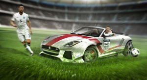 Sitting behind the wheel is Wayne Rooney (obviously) and next to the car (and we had to look this up) is Chelsea center-back Gary Cahill – hardly one of the stars of the team. Also, Rooney’s Jaguar is left-hand drive for some reason, but we’ll let that slide.