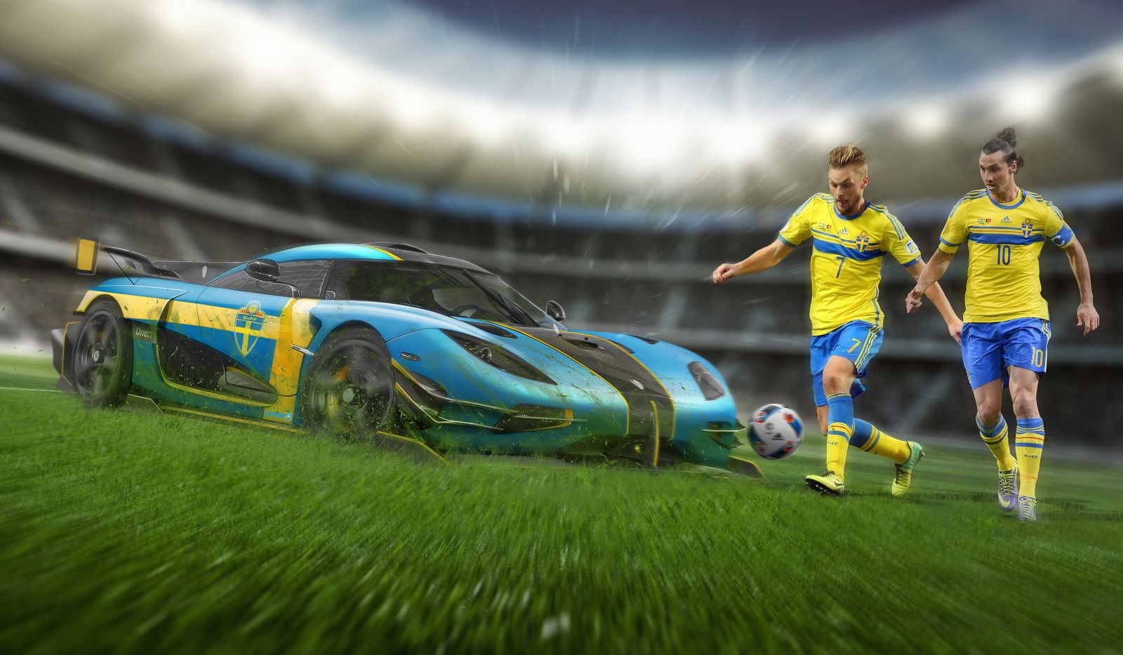 If France gets to showcase the Chiron, the Swedes can definitely pull out a hypercar of their own in the mighty Koenigsegg One:1 – able to accelerate from 0 to 400 km/h (248 mph) in just 20 seconds. Next to the One:1 is Swedish footballing legend Zlatan Ibrahimovic and Sunderland winger Sebastian Larsson.