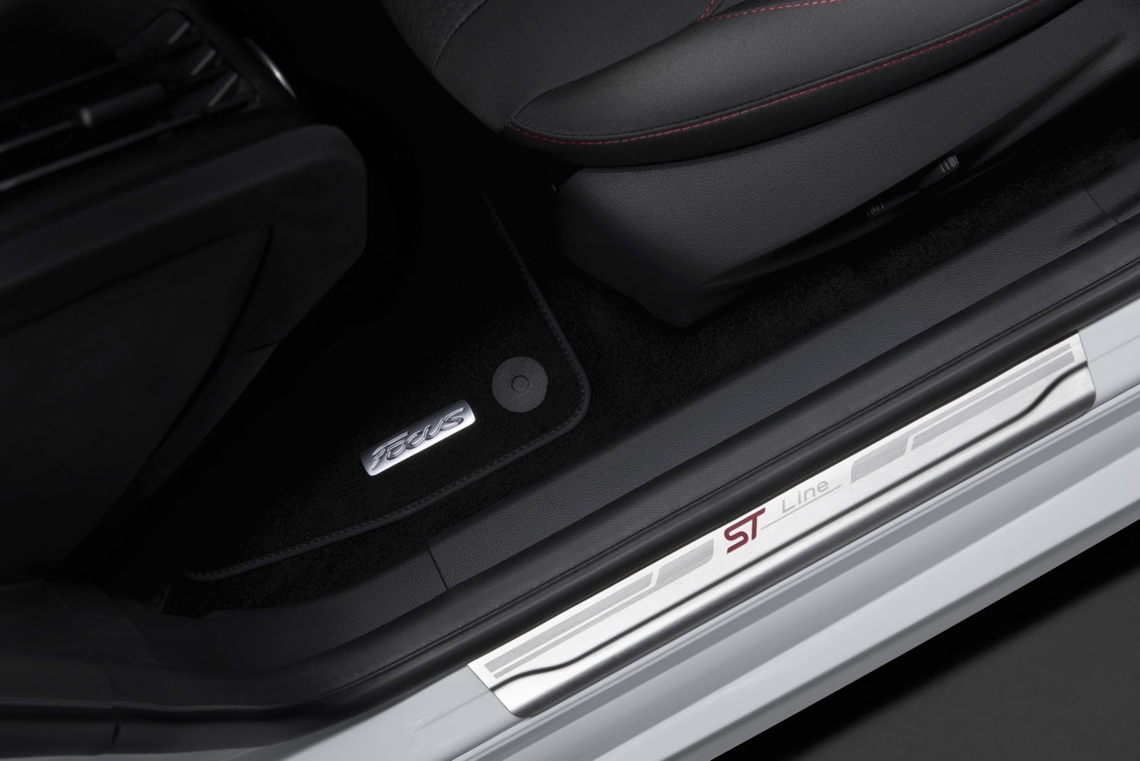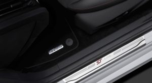 Inside, there are sports seats with red stitching and a perforated leather ST-style steering wheel with gray stitching. The ST-style gear knob, dark woven headliner and ST-Line scuff plates complete the package.