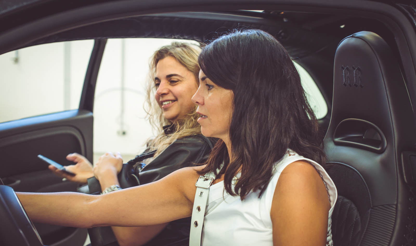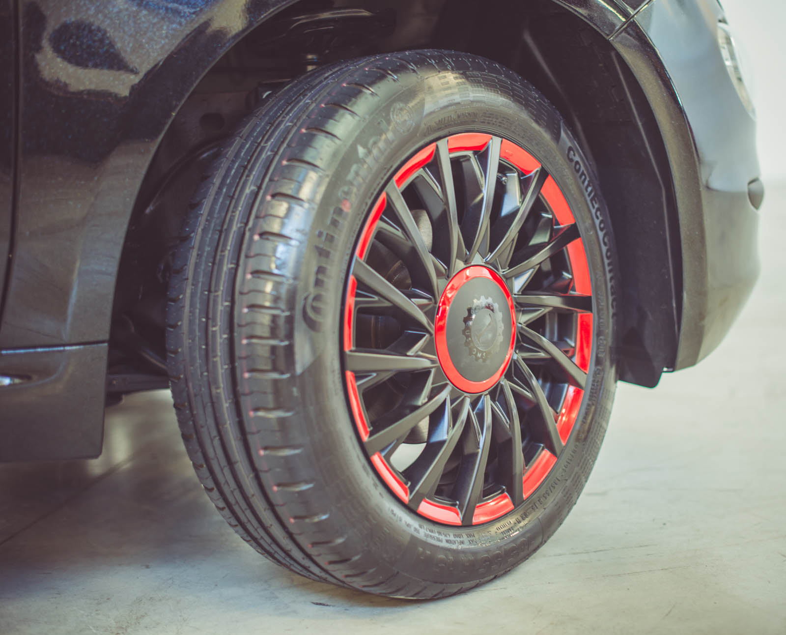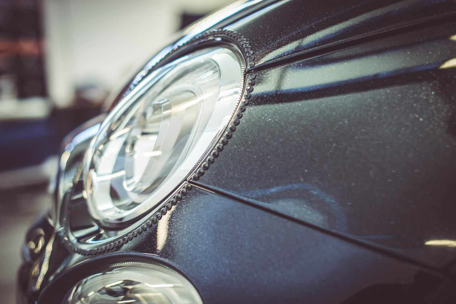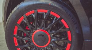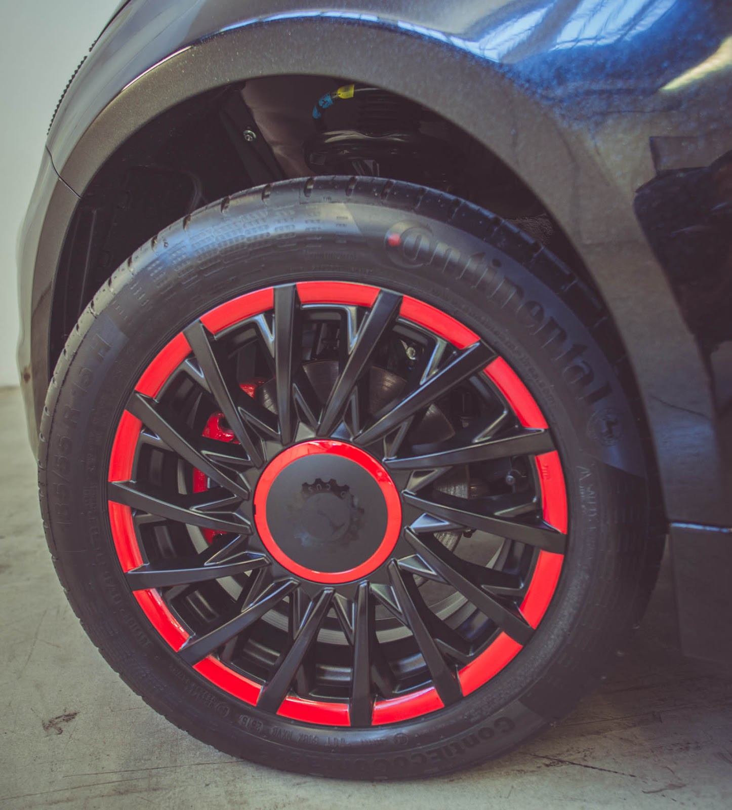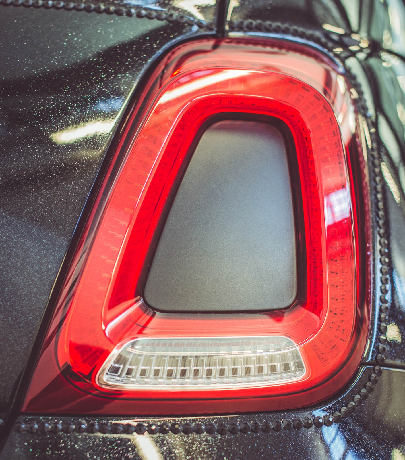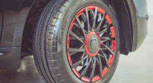 The 555RR is based on the 500C with its opening fabric roof, but stands out with an array of custom enhancements. The gloss black paintjob is accented with a silver-tone glitter and offset by a broad, tone-on-tone matte stripe. The grille and alloys are trimmed in red, with Swarovski crystals framing the head- and tail lamps.