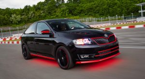 The whole thing is painted in metallic black with red highlights and rides on matching 18-inch wheels packing cross-drilled front brakes. Inside it’s all LED ambient lighting and a 14-speaker, 1800-watt sound system. And under the hood sits a 1.4-liter turbo four rated at 125 horsepower and mated to a seven-speed dual-clutch transmission.