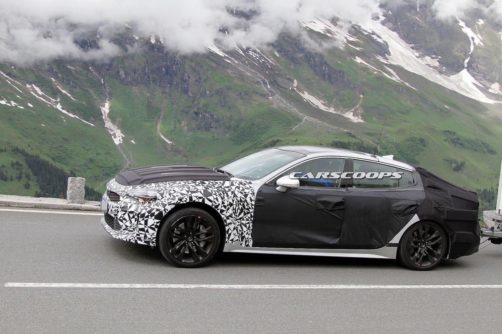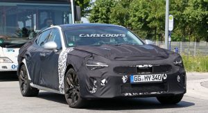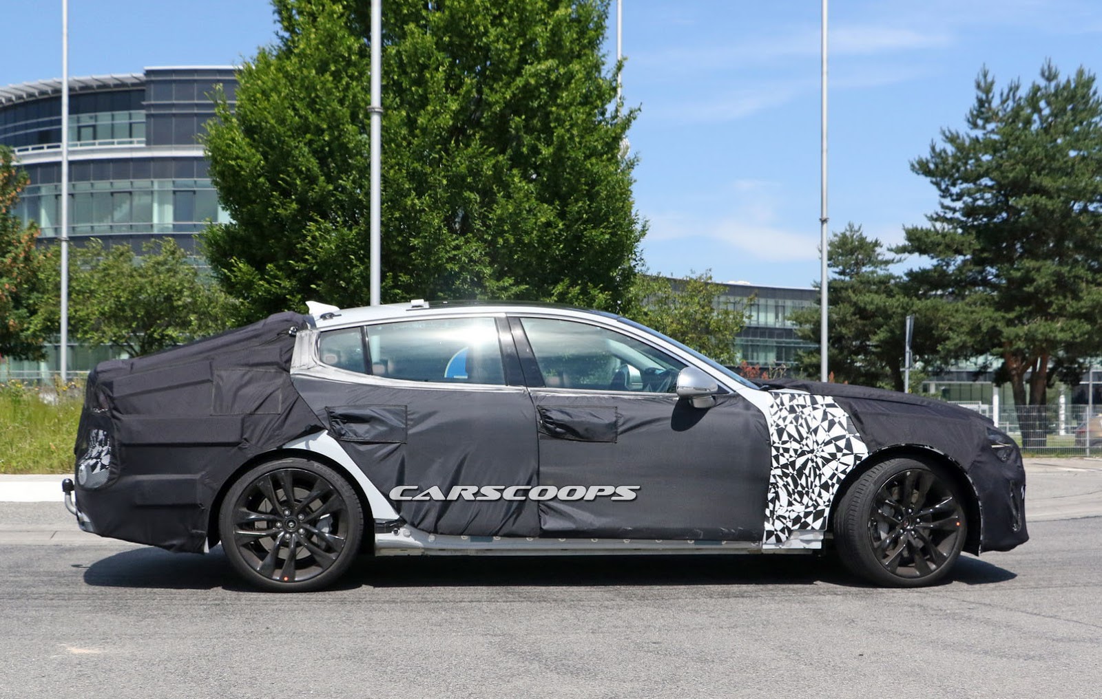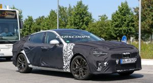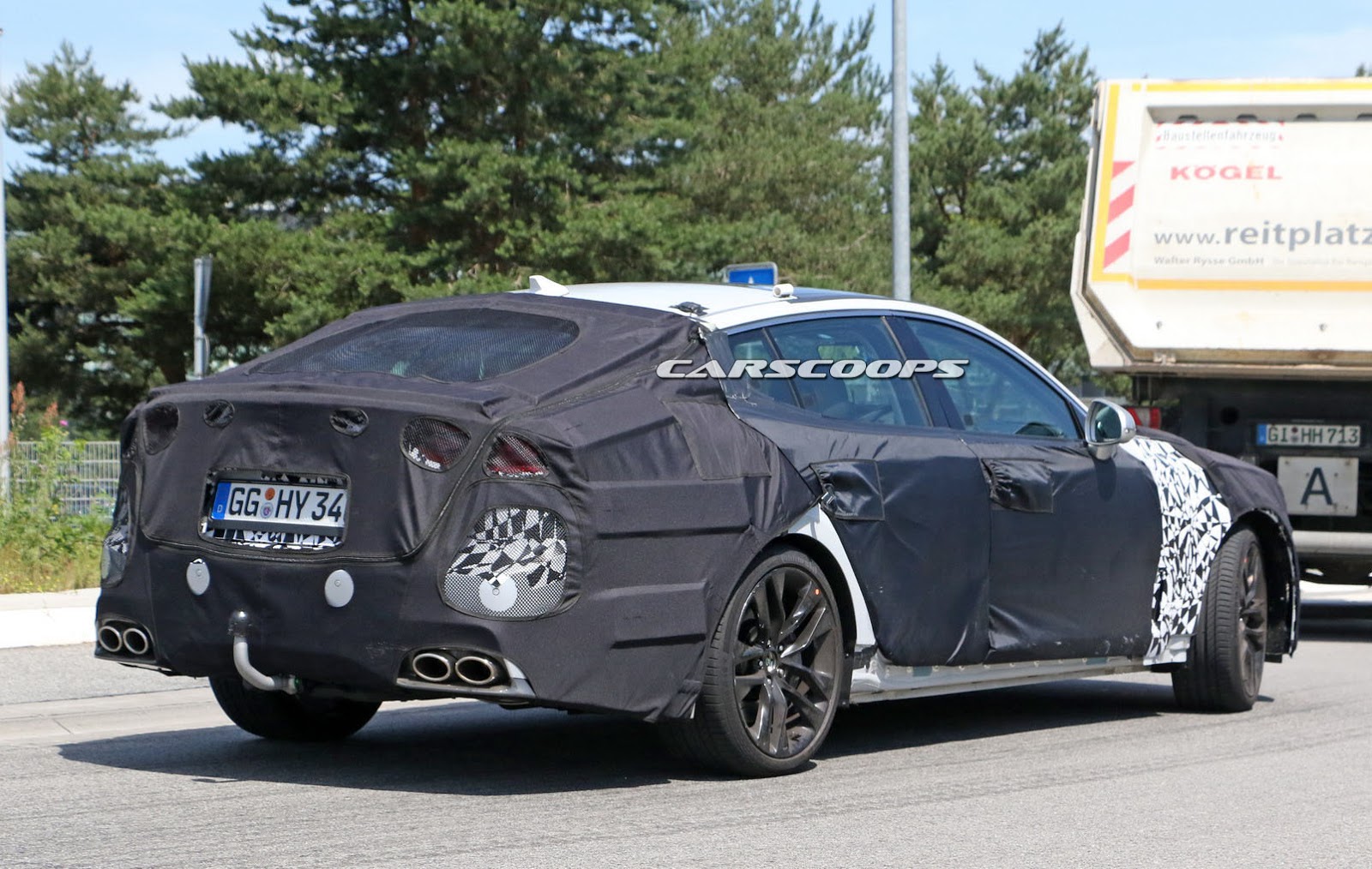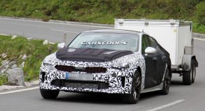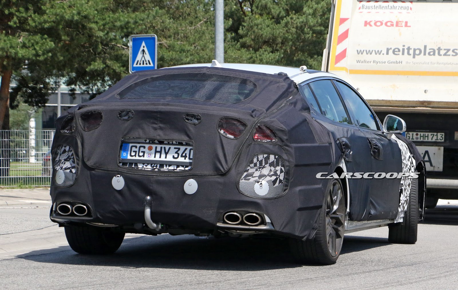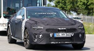 The photos show us the prototype towing a big trailer which is common practice during development for accelerated stress-testing of the powertrain components. Kia plans their new four-door coupe to be available on a global scale with a range of petrol and diesel engines, including the recently revealed 3.3-litre twin turbo V6 engine, which in the case of the Genesis G80 Sport, makes 365hp.