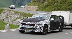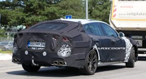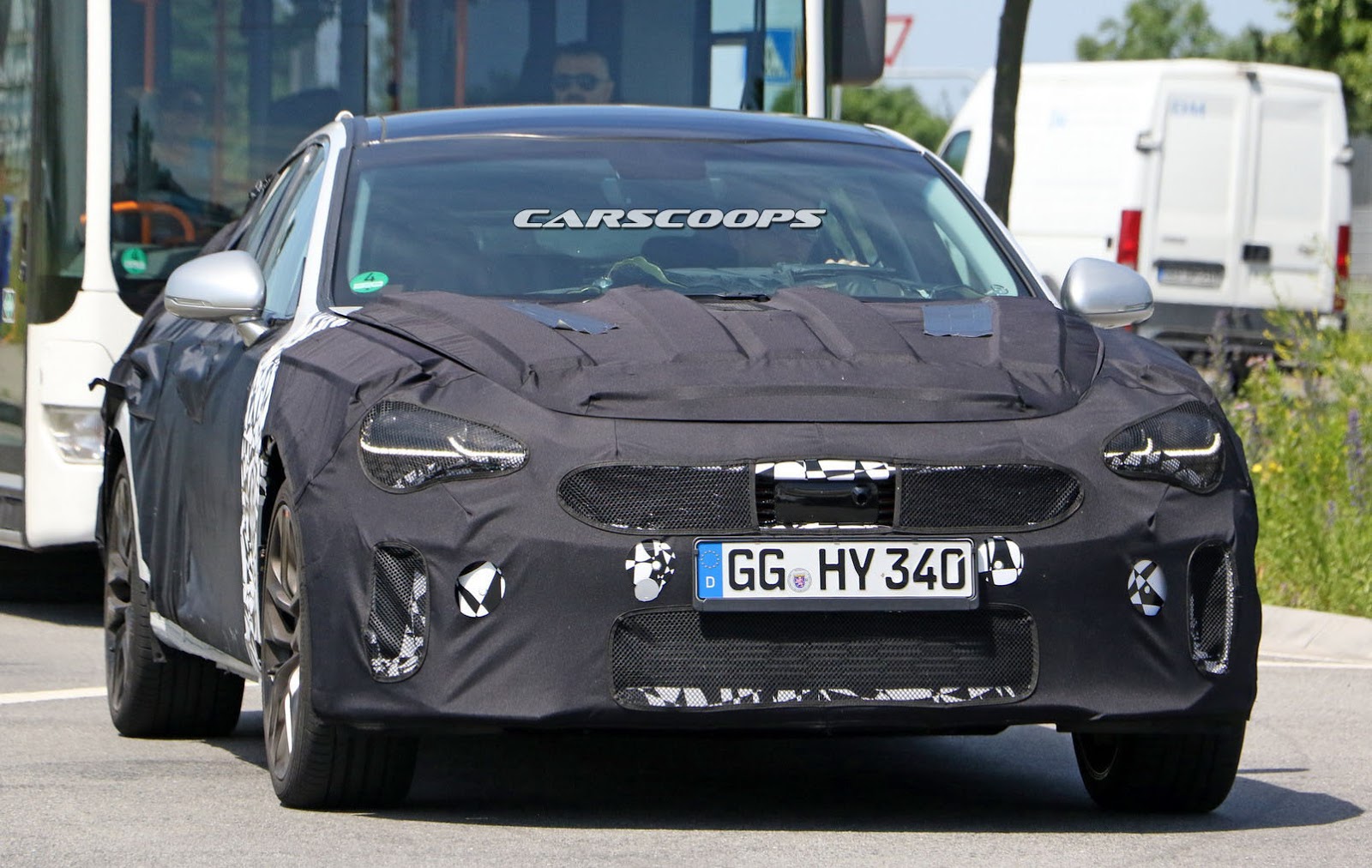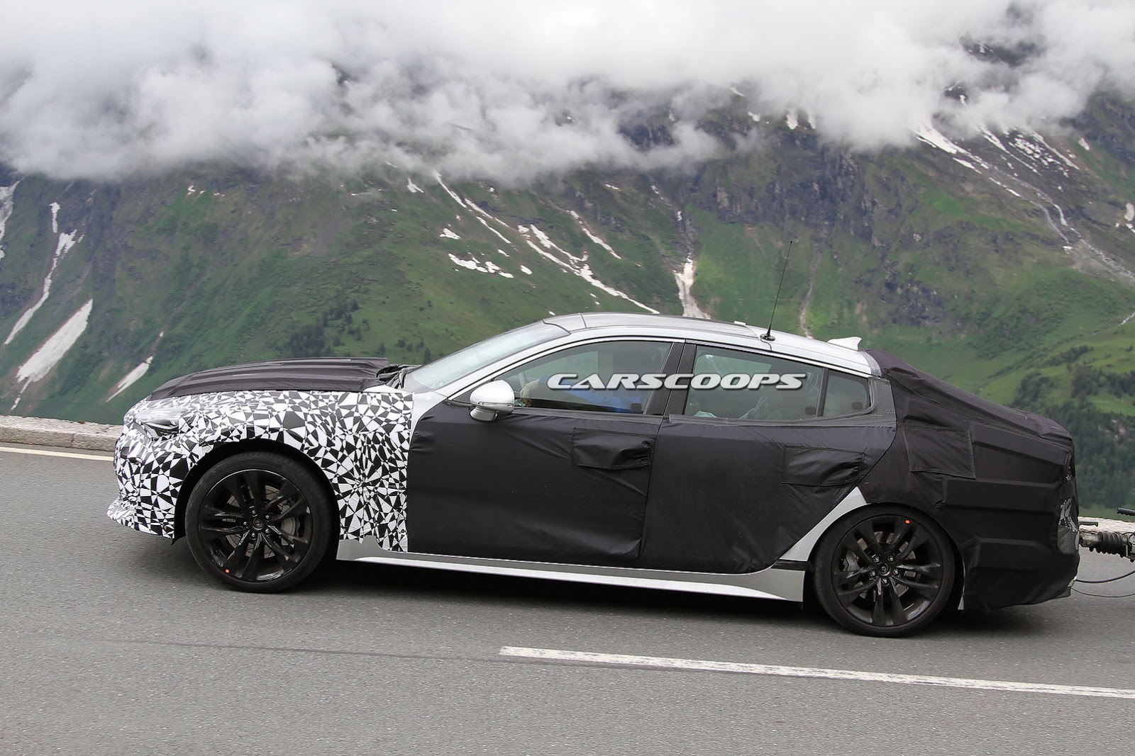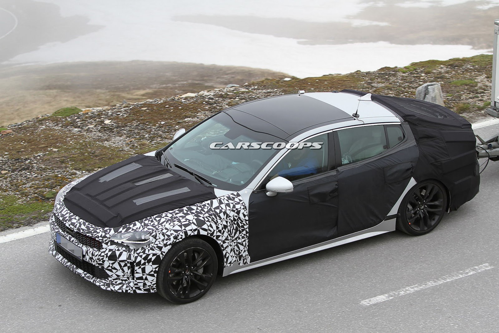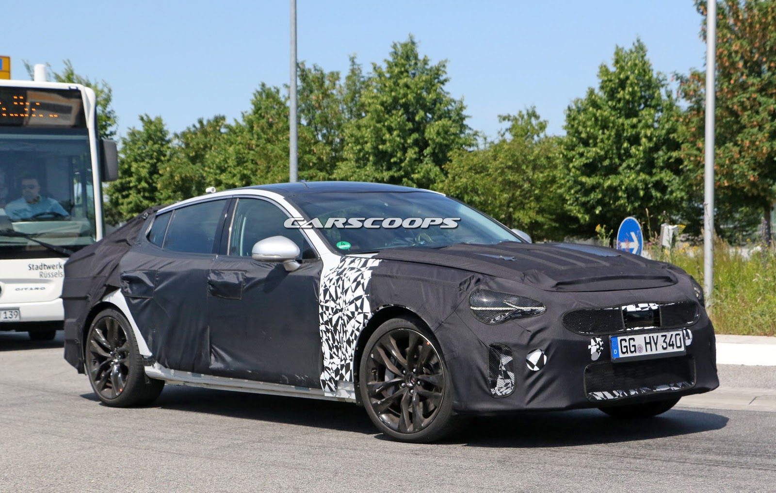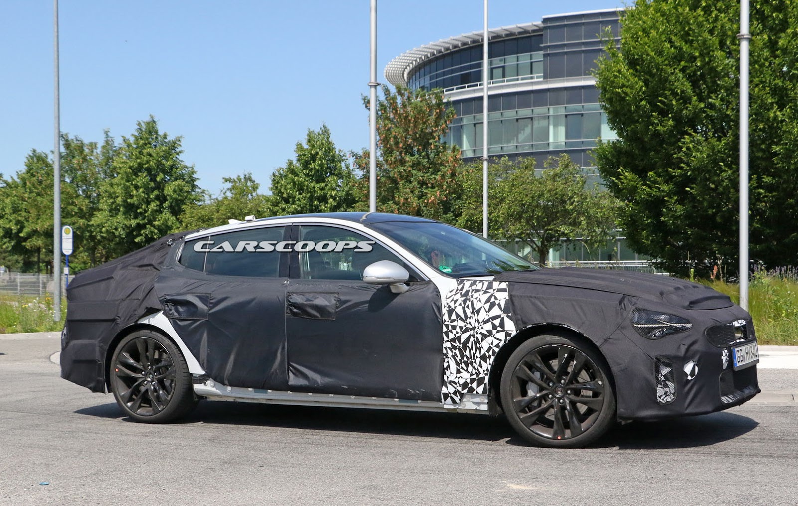 The photos show us the prototype towing a big trailer which is common practice during development for accelerated stress-testing of the powertrain components. Kia plans their new four-door coupe to be available on a global scale with a range of petrol and diesel engines, including the recently revealed 3.3-litre twin turbo V6 engine, which in the case of the Genesis G80 Sport, makes 365hp.