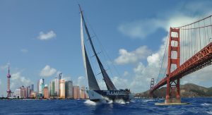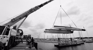 The three-hull Multi70 vessel was designed by the naval architects at VPLP and measures 70 feet long with advanced foils that bring it close to hydroplane status, skimming the surface of the water at speeds in excess of 40 knots – over 46 miles per hour in landlubber terms.
