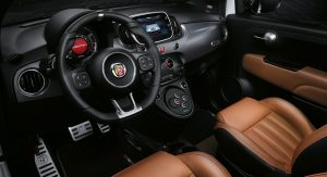 The cabin can now be specified with Alcantara and carbon trim strips with Abarth creating a new range of upholstery options. Entry-level models come with specific fabric seats while Turismo models get leather ones in three different colors while Competizione models come fitted with the hardcore Corsa by Sabelt bucket seats.