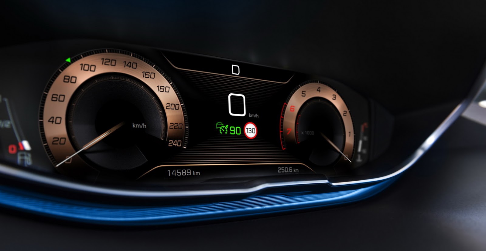 On the inside, the GT gets copper topstitching on the dashboard trim, door trim panels and central armrests, part Alcantara or optionally, full leather seats, genuine aged-oak trim, touches of satin steel chrome, a flat bottom steering wheel and a copper shade for the digital instrument panel display.