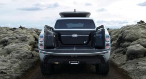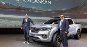The Alaskan should look like a softened down and more realistic version of last year’s concept retaining the same dimensions and much of the styling, with Renault stating that it will offer a range of twin-turbocharged engines including the 163hp 2.3-liter diesel found in the Master Van.