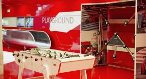 For two euros, visitors can ride the slide, descending at a rate of four meters per second to get from the top floor to the basement in just 15 seconds. At the bottom they’ll also find other games to keep themselves (or their kids) occupied, including a foosball table and a game called Batak, designed to improve hand-eye coordination and used by Citroën Racing drivers to hone their skills.