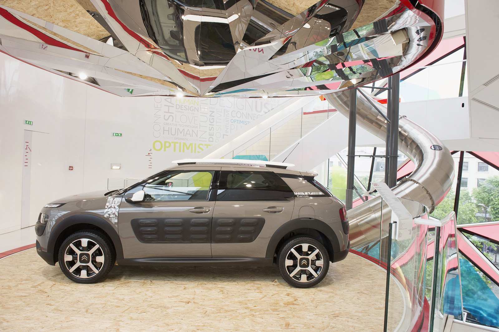 Of course there’s more to the location than the slide. The showroom also includes plenty of cars on display, chief among them the C4 Cactus Rip Curl edition and the E-Mehari concept car. There’s even a photography exhibition curated by Intersection magazine and inspired by the E-Mehari.