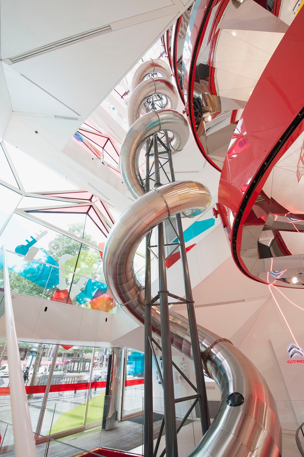 Citroën’s flagship showroom on the Champs-Elysées in Paris has cars on display, of course. But it also features a giant slide twisting and turning down 26 meters, or roughly eight stories tall. The structure incorporates 63 meters of slide, or roughly the length of sixteen C3 hatchbacks parked end to end, were you to straighten out the tube and lay it flat.