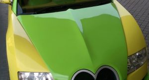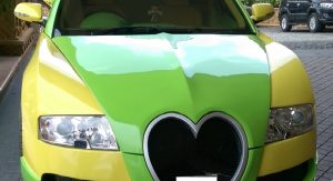 Underneath the dual-tone green and yellow color scheme is an older-generation Honda Accord, missing its rear seats. According to Motoroids, the interior was “handcrafted” and features the same color scheme as the exterior, which would probably be more evident if the car didn’t also come with tinted windows.