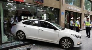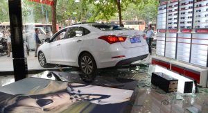 The accident, involving this white Hyundai Mistra, took place in the city of Zhengzhou, Henan Province, and according to Carnewschina, the woman behind the wheel somehow managed to hit the accelerator too hard and was unable to “locate” the brake pedal.