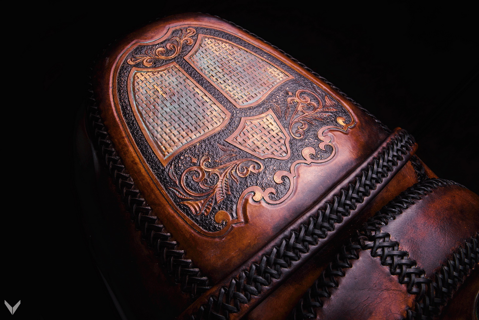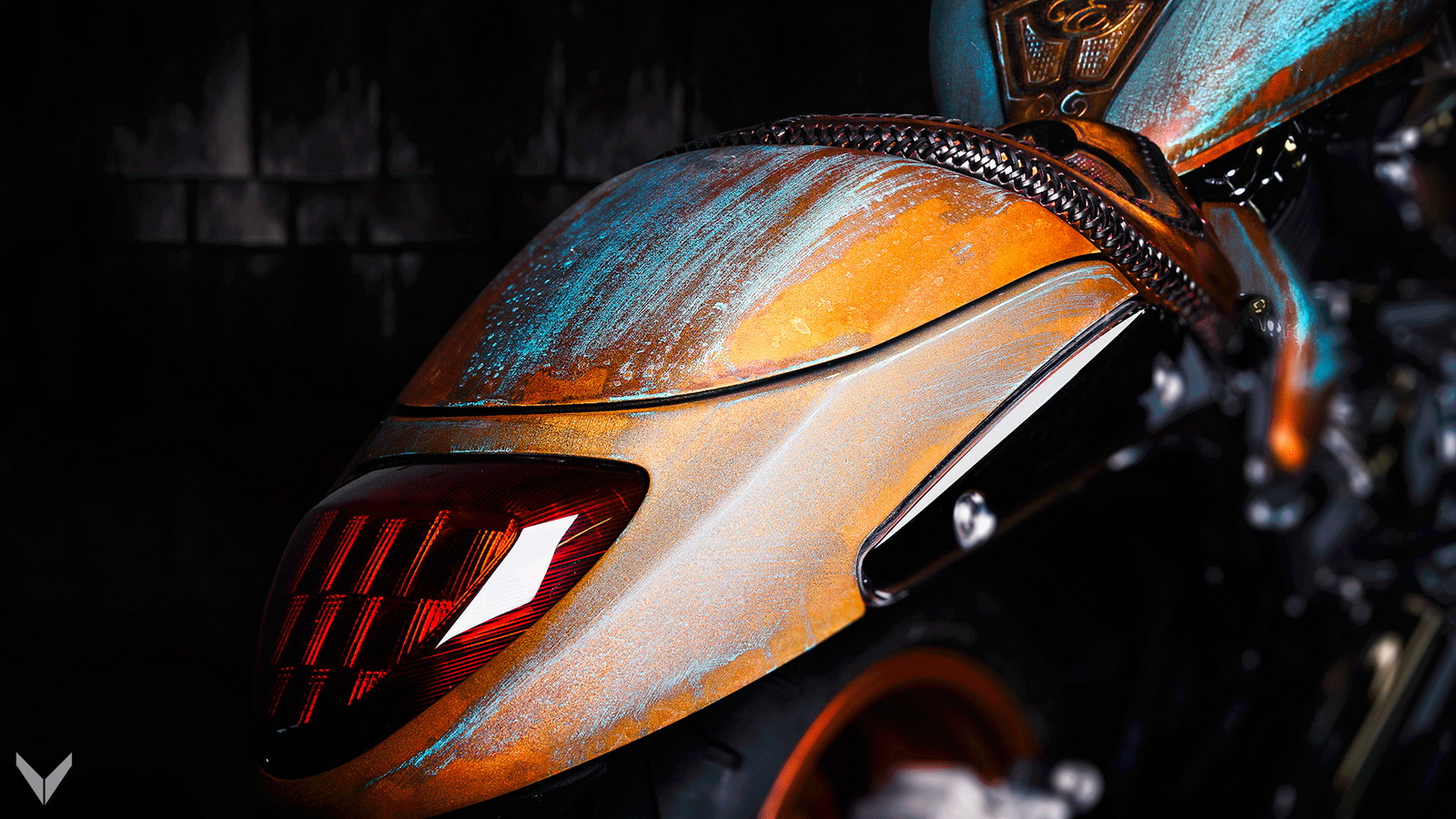 Still, its contemporary details never did make it into something resembling a vintage “hog”, but Vilner transformed the bike into a one-off mix of traditional leather treatment methods and state of art painting techniques.