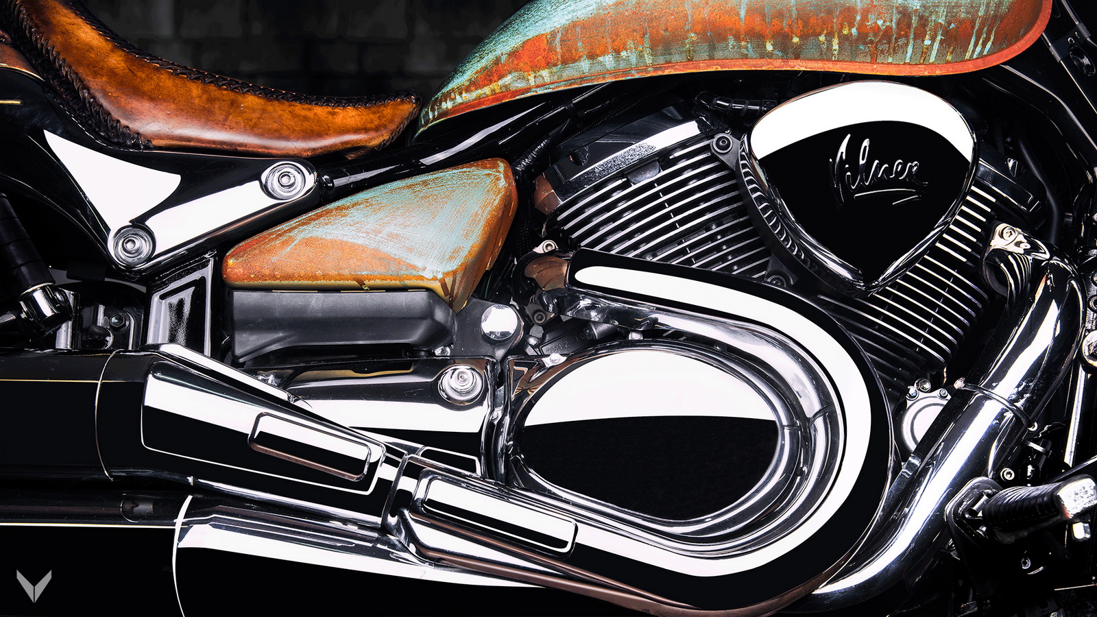 Completing the motif is the natural vegetable-tanned leather that has been hand carved using traditional techniques. The bull’s skull and also the ‘V’ logo present on the seat goes well with the 328 kg (723 lbs) bike’s 1462 cc, 68 hp, 115 Nm (84 lb-ft), V-Twin engine.