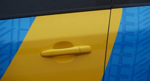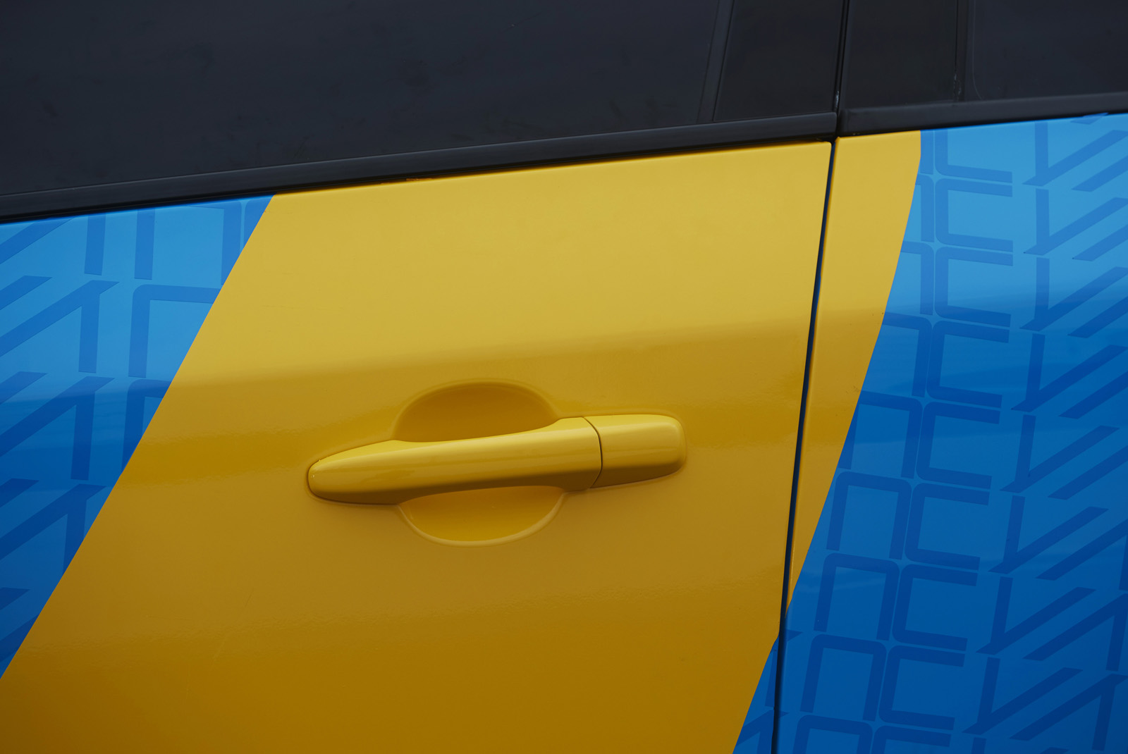 “We wanted to drape the car in the Swedish colours and to use Cyan Racing as an element in the design like a track texture,” said the duo. “We also wanted to create a sense of constant motion on the car but still keeping it simple.”
