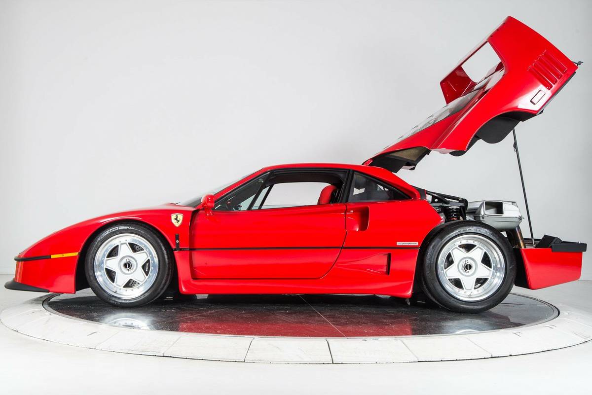 The car in question is a 1990 model and, despite being 26 years old, only has 2,000 miles on the odometer and been awarded Ferrari Classiche Certification. As with all F40s, it is painted in the Italian company’s recognizable shade of Rosso Corsa and sits on those classic five-spoke star-shaped wheels.